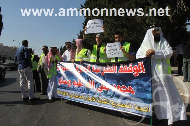 عمون - محمد ابو حميد - أقامت اللجنة التحضيرية لنقابة الأئمة والعاملين في الأوقاف الأردنية وهيئة الدفاع عن المعتقلين عصر الاثنين اعتصاما في الساحة الخارجية لمسجد الجامعة الأردنية احتجاجا على الاساءة للرسول محمد صلى الله عليه وسلم .