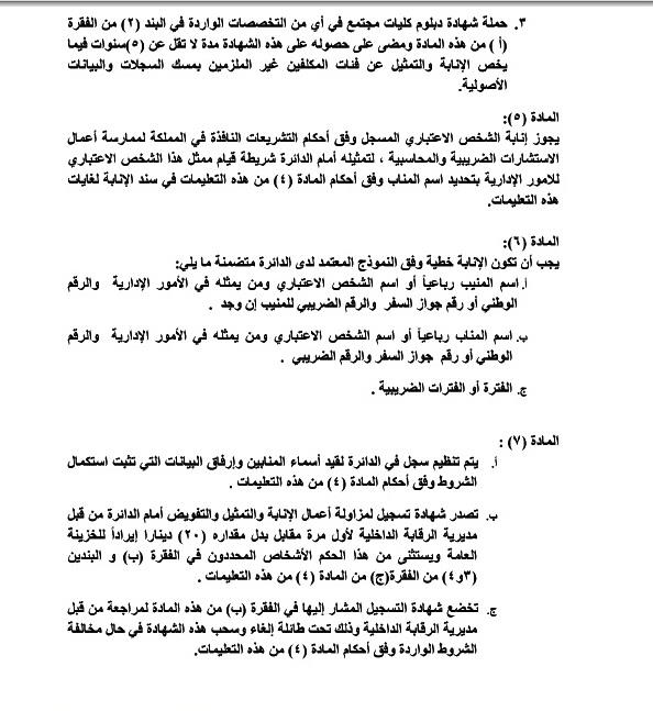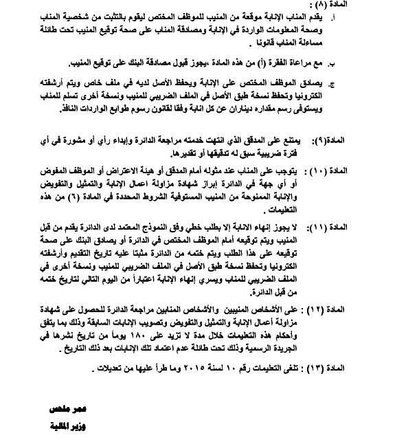 عمون - صدرت في الجريدة الرسمية التعليمات التنفيذية رقم 13 لسنة 2015 تعليمات الإنابة والتمثيل والتفويض لدى دائرة ضريبة الدخل والمبيعات .