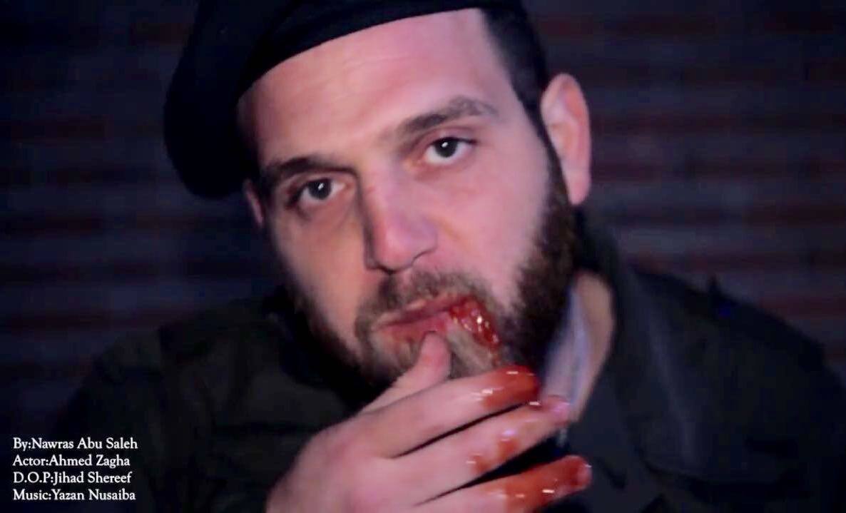 مقطع المخرج أبو صالح الذي ردّ على الشركة، بواقع 44 ثانية، يظهر فيه جندي يأكل البيتزا وتسيل من فمه الدماء، ويظهر في نهايته عبارة: "أطعموا القتلة!".