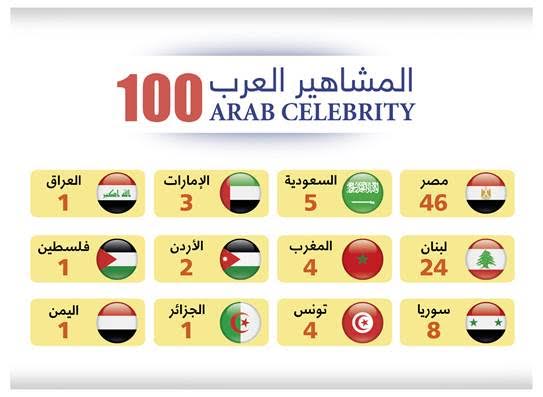 - مشاهير مصر يهيمنون على القائمة بـ 46 مركزاً من أصل 100.