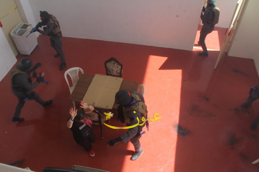 وتابع الحضور تمريناً لمداهمة أمنية تضمنت فرضية التعامل مع مجموعة من الإرهابيين، وتخليص رهائن، نفذه عدد من المتدربين.