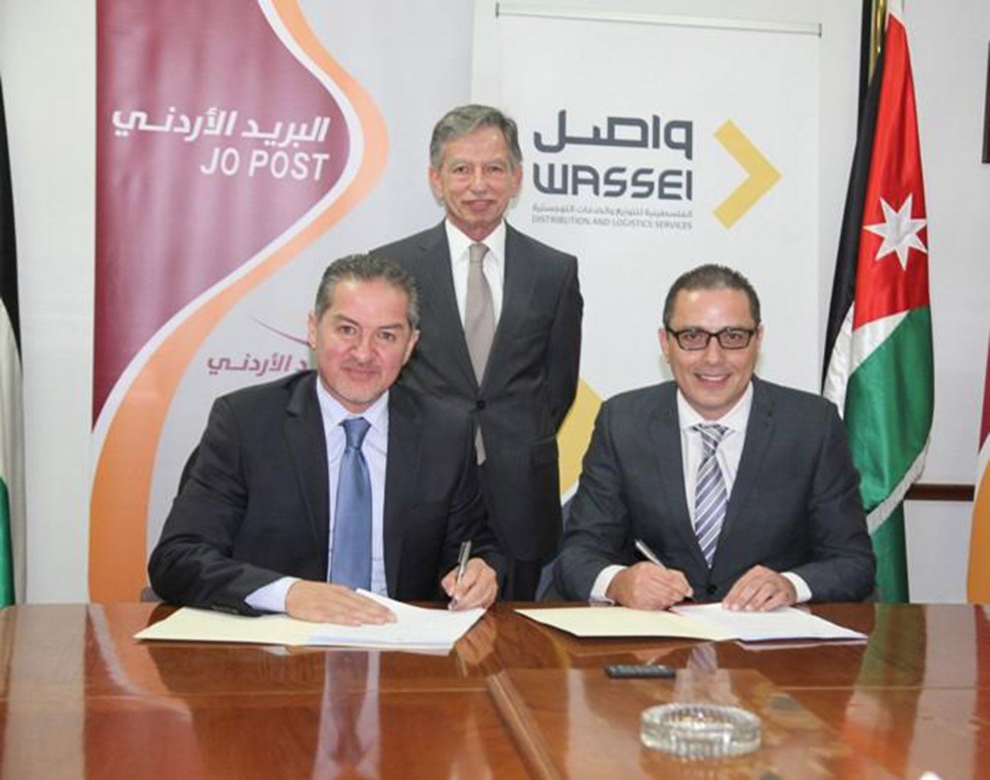 ووقع الاتفاقية بحضور رئيس مجلس ادارة شركة البريد الاردني المهندس باسم الروسان كل من مدير عام شركة البريد الاردني الدكتور خالد ذيب اللحام ورئيس مجلس ادارة الشركة الفلسطينية للتوزيع والخدمات اللوجستية "واصل" مراد طهبوب في مقر شركة البريد.
