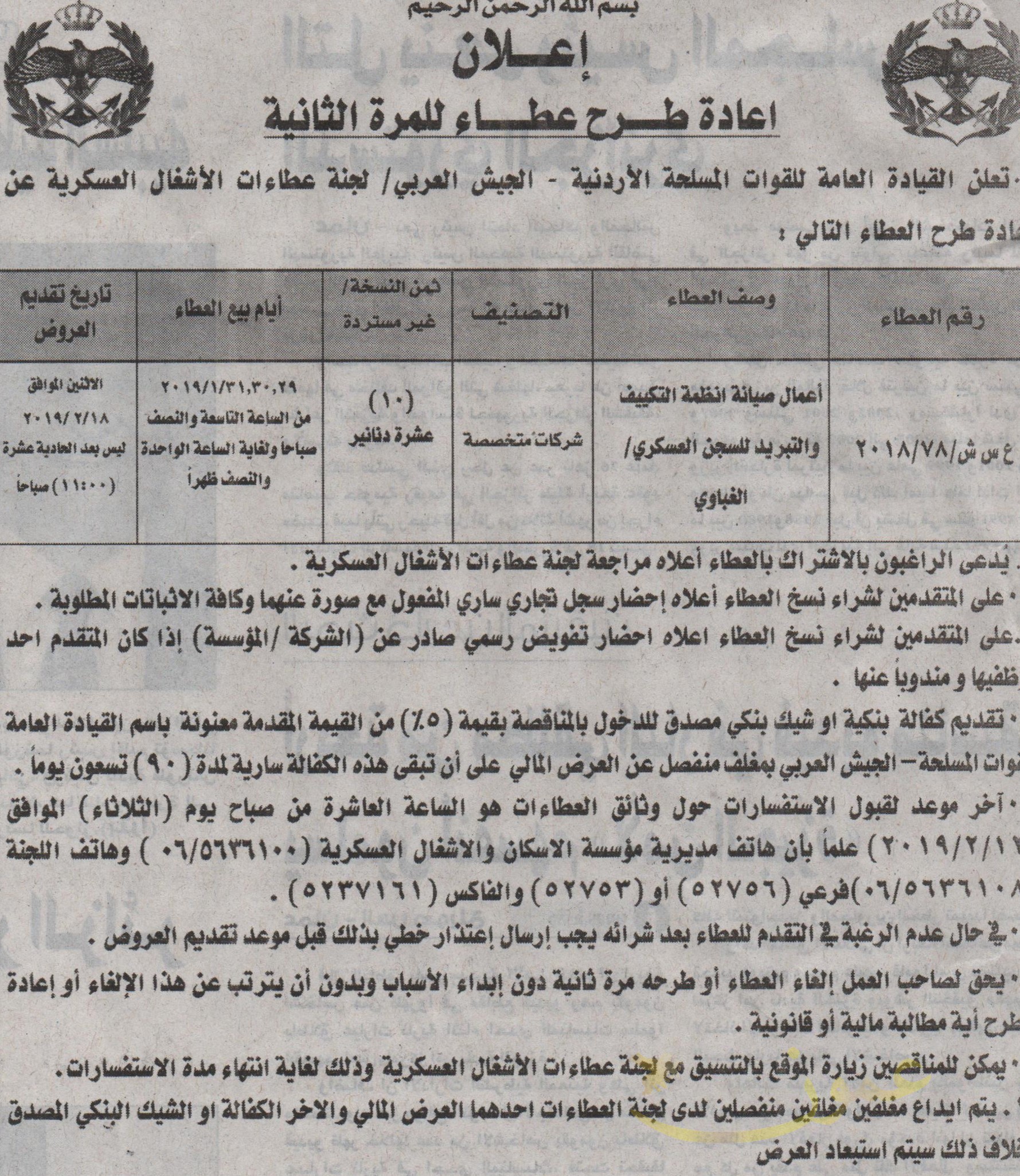 اعمال صيانة انظمة التكييف والتبريد لسجن العسكري - الغباوي - القيادة العامة