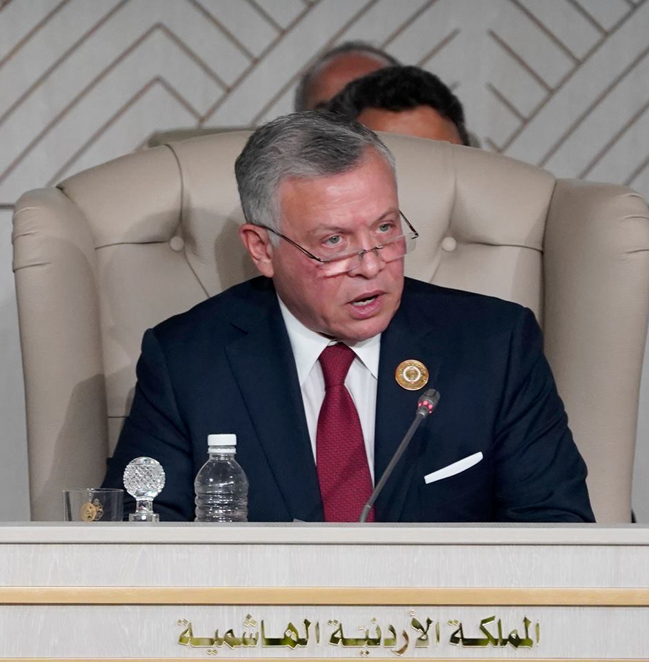 وترأس جلالة الملك الوفد الأردني المشارك في أعمال القمة، الذي ضم وزير الخارجية وشؤون المغتربين أيمن الصفدي، ومستشار جلالة الملك، مدير مكتب جلالته، منار الدباس، والمستشار الخاص لجلالة الملك، علي الفزاع، ومندوب المملكة الدائم لدى جامعة الدول العربية، السفير الأردني في القاهرة علي العايد.