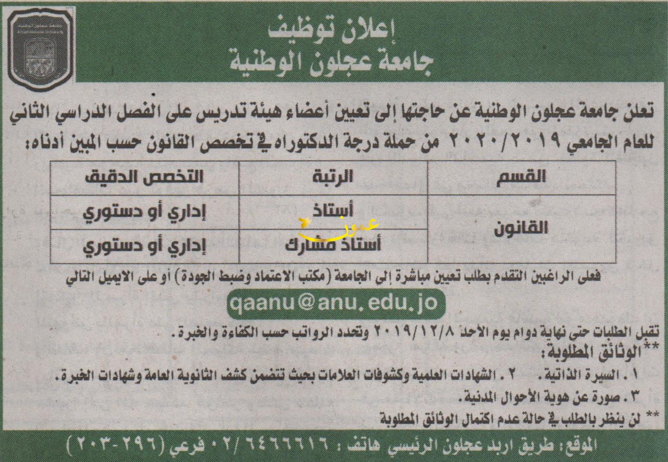 وظائف شاغرة لدى جامعة عجلون الوطنية