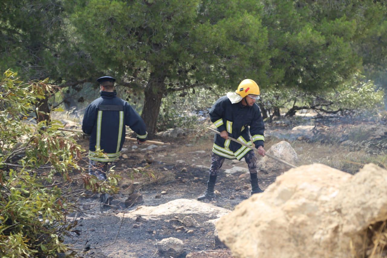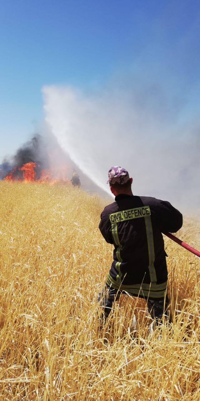 عمون - أخمدت كوادر الإطفاء في مديرية دفاع مدني البلقاء حريقاً أتى على مساحات واسعة من الأعشاب الجافة والأشجار الحرجية والأشجار المثمرة في منطقة عين الباشا. |