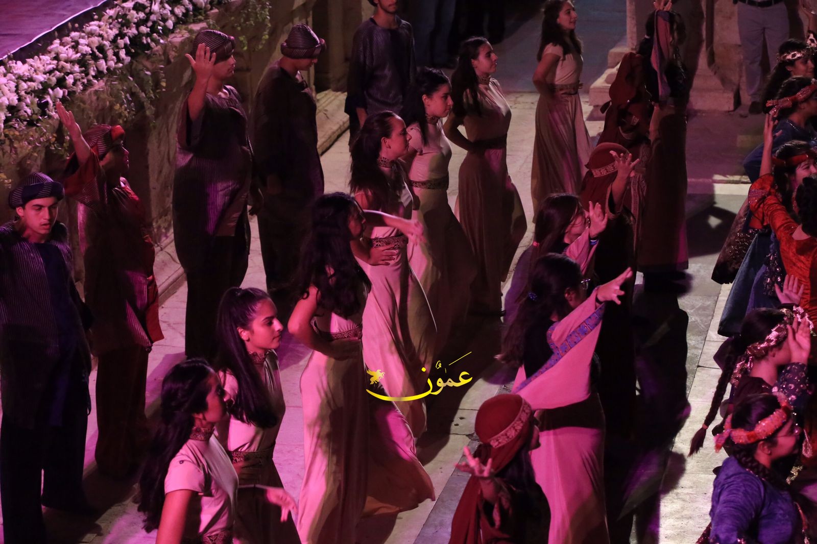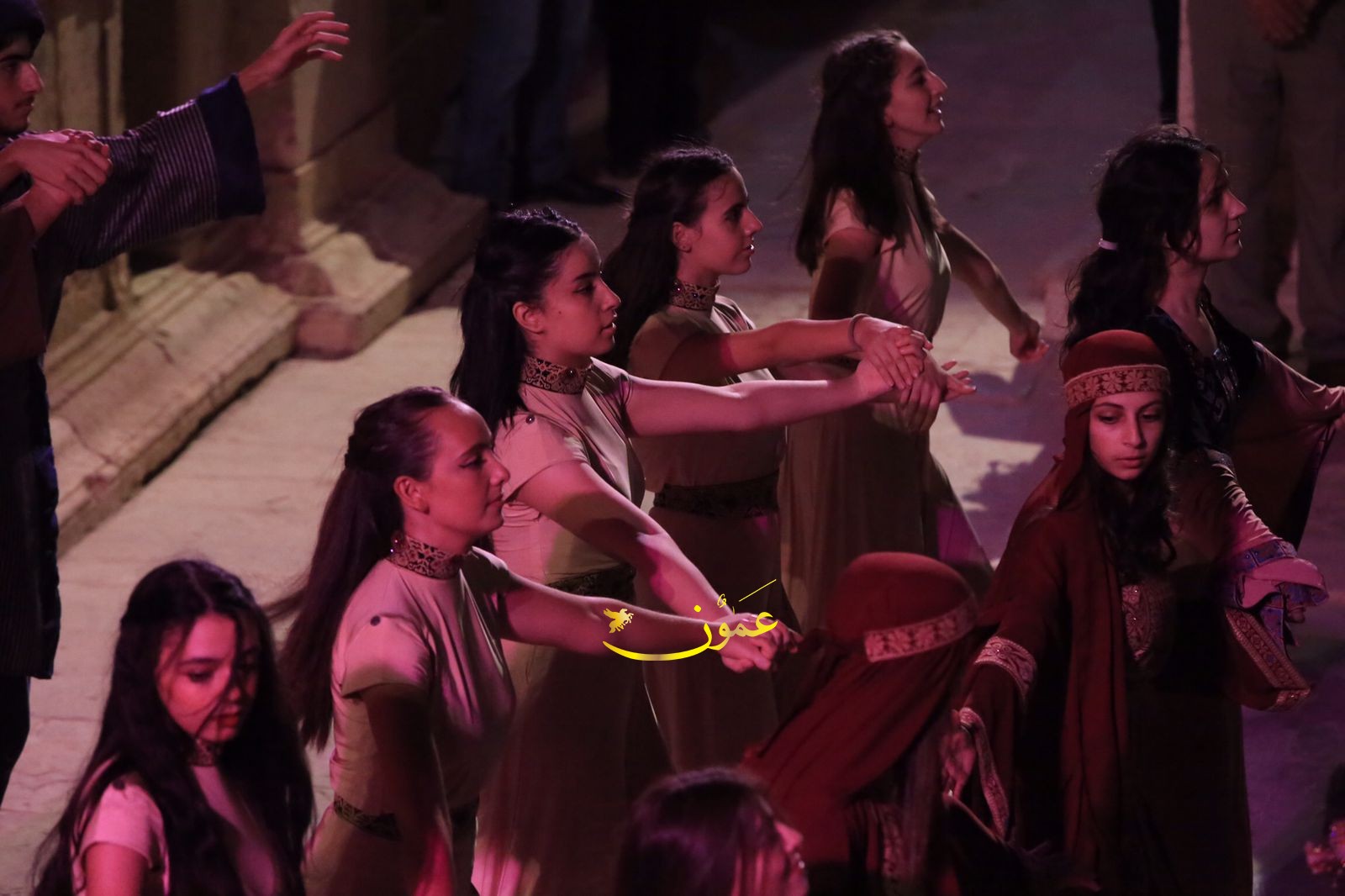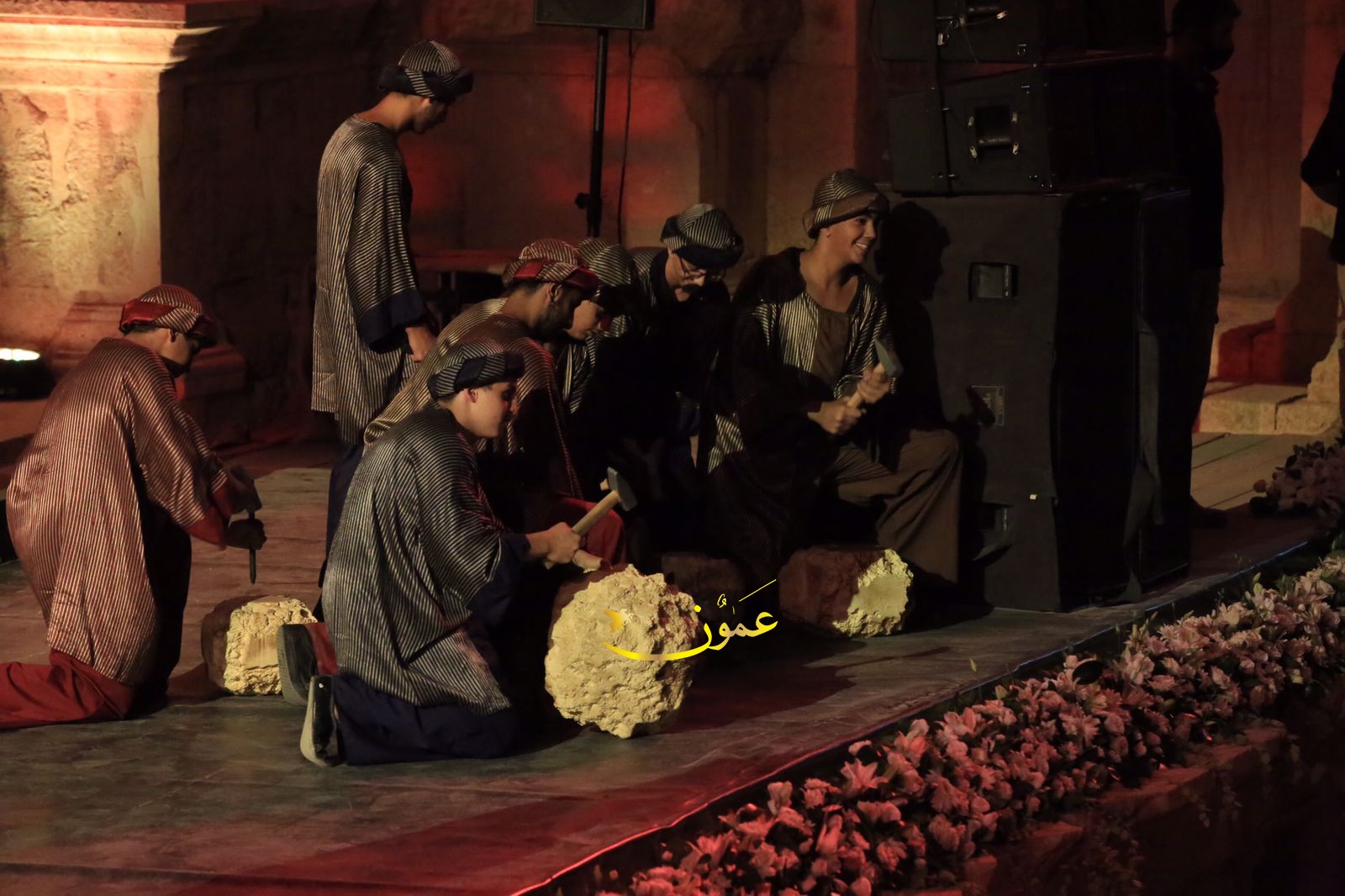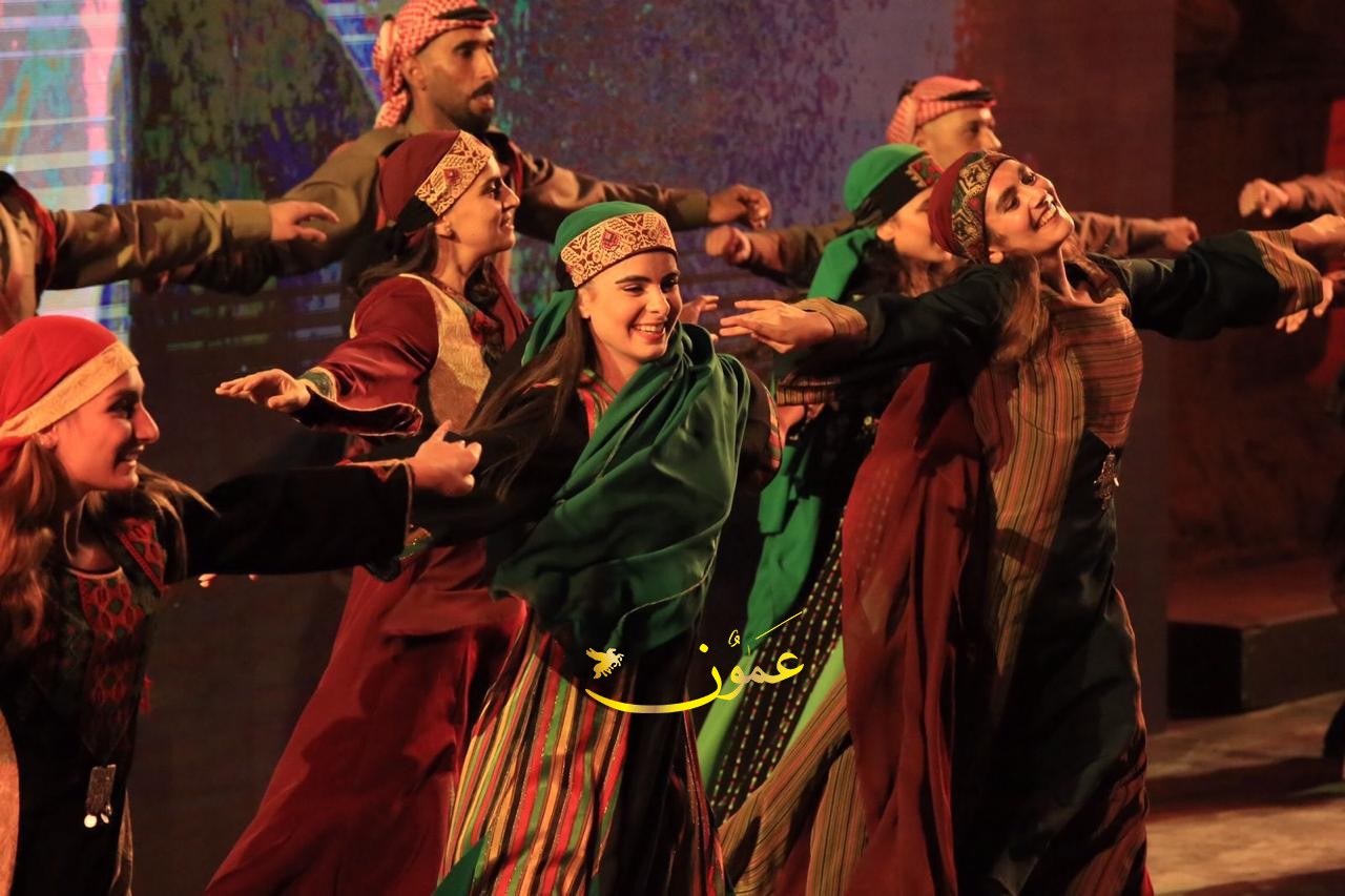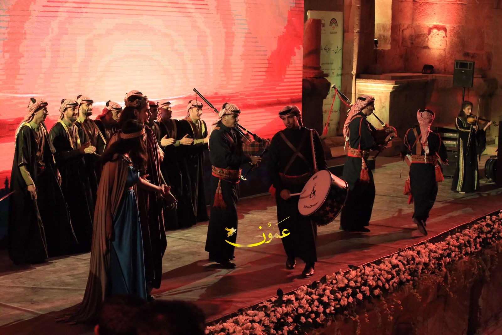وجاءت اللوحات الفنية الاستعراضية التي انطلقت من بين الجمهور، ومن خلال مواطن جرشي بلباسه التاريخي، لتعلن ارتباط الجمهور بهذا العمل الفني، حيث تبدأ اللوحات الراقصة التي تؤكد ارتباط الماضي بالحاضر لاهل المكان وسط استعراض فني ادائي راقص يعيد تشكلات الحياة عبر الزمن في هذه المدينة الغارقة في الزمن.