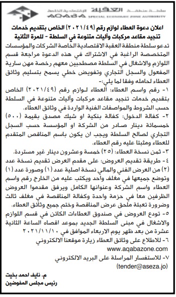 عطاء صادر عن سلطة منطقة العقبة الاقتصادية الخاصة