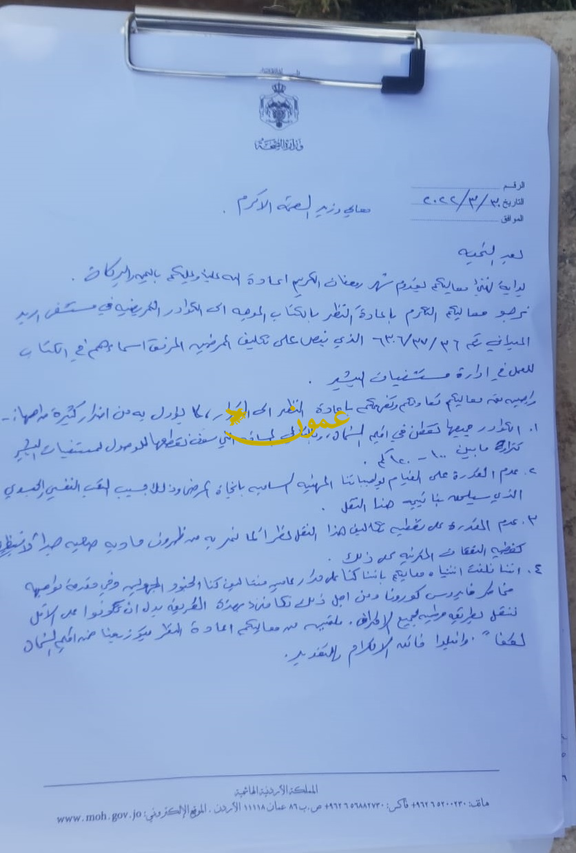 وبدورهم، أكد اعضاء لجنة الصحة والبيئة النيابية "الدكتور عبدالرحيم المعايعة ، فريد حداد، احمد السراحنة" لـ عمون، أنهم سيتابعوا هذه المسألة مع وزير الصحة فراس هواري والمعنيين بالموضوع، للوقوف على تفاصيل وحيثيات القرار، ومحاولة انصاف الممرضين المتضررين، مشيرين إلى أننا على ابواب شهر رمضان الفضيل، ونقلهم للعمل من الشمال إلى الوسط فيه مشقة عليهم، اضافة الى انهم من الفئات التي وقفت في الصفوف الامامية لمواجهة جائحة كورونا.
