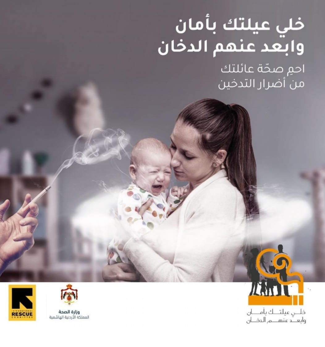 عمون - أطلقت وزارة الصحة وبالتعاون مع اللجنة الدولية للإغاثة IRC اليوم الحملة الإعلامية للتوعية بمخاطر التدخين والتدخين السلبي على صحة المدخنين وعائلاتهم والتي حملت شعار "خلي عيلتك بأمان وأبعد عنهم الدخان"، وذلك ضمن احتفالية وزارة الصحة بمناسبة اليوم العالمي للامتناع عن تعاطي التبغ والذي يصادف الحادي والثلاثين من شهر آيار من كل عام.