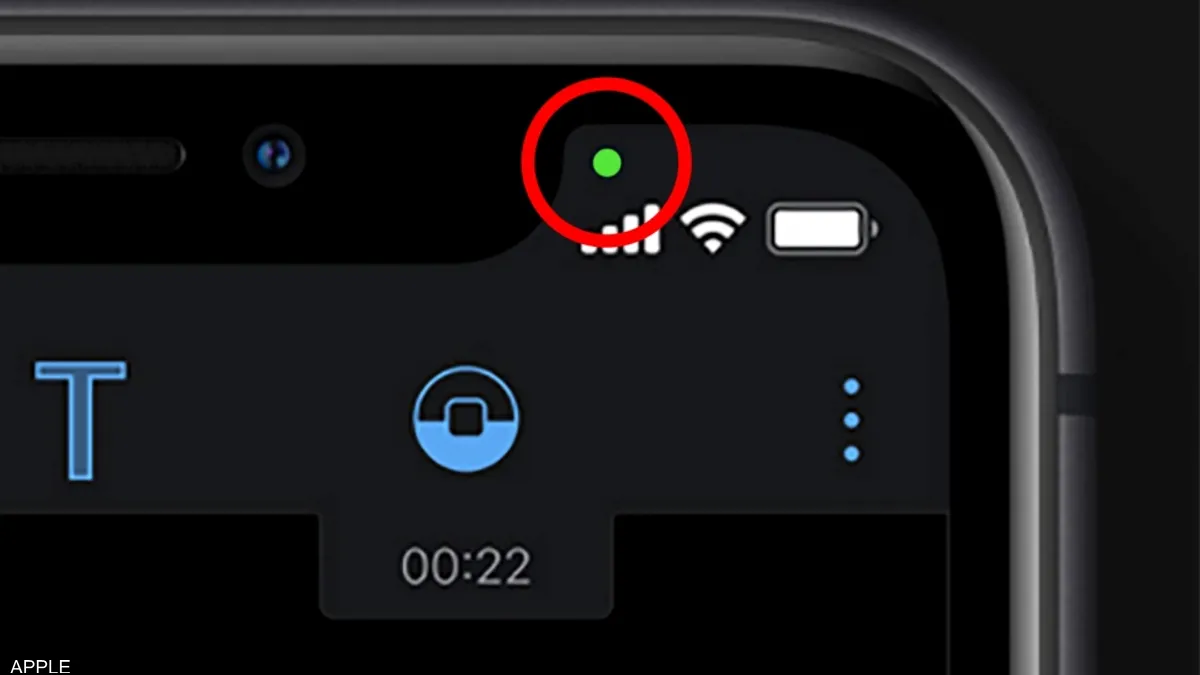 وتوضح أن النقطتين تنبيه رسمي من شركة "أبل" صانعة "آيفون" بأن الميكروفون أو الكاميرا جرى تفعيلهما.