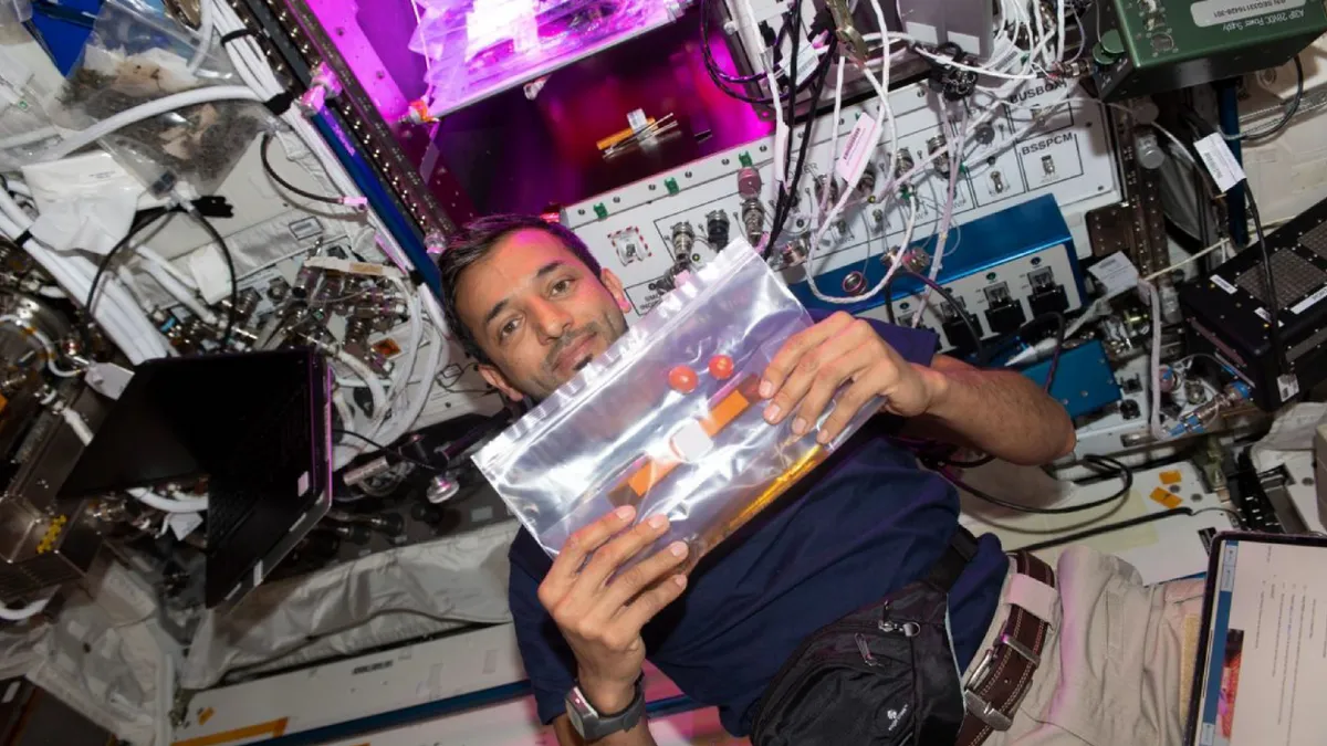 عمون - نشر مركز محمد بن راشد للفضاء، الجمعة، على حسابه في تويتر، صورا توثق مشاركة رائد الفضاء الإماراتي سلطان النيادي، في "تجربة زراعية" في الفضاء.