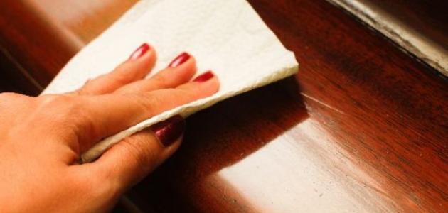 5. تلميع الخشب: بعد التنظيف، يمكنك استخدام ملمع خشب ذي جودة عالية لتلميع السطح ومنحه لمعانًا جميلاً. تطبيق طبقة رقيقة من الملمع ومسحه بقطعة قماش ناعمة.