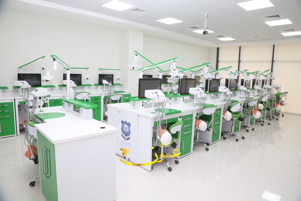 اما المبنى المجاور فسيضم قسم سريري يحتوي على 200 عيادة تدريبية مجهزة لكافة تخصصات طب الأسنان و مختبر لأبحاث الذكاء الاصطناعي في طب الأسنان.