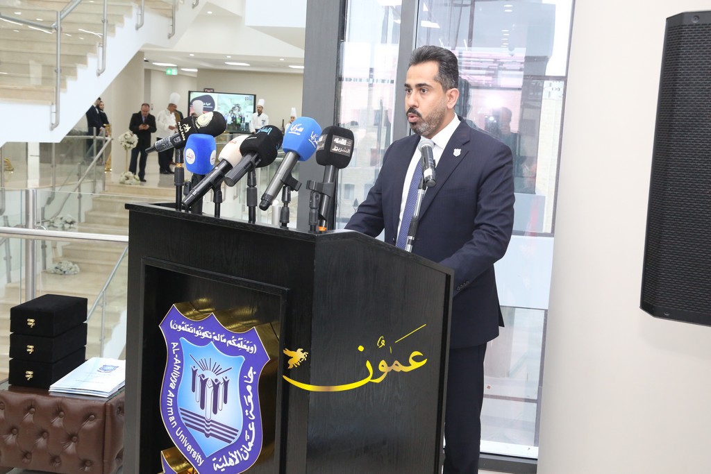 والقى رئيس جامعة عمان الاهلية الاستاذ الدكتور ساري حمدان كلمة قال فيها : بالنيابة عن مجلس الأمناء وهيئة المديرين ومجلس العمداء في الجامعة أرحب بكم أجمل ترحيب واقول لكم أن هذا الحدث يحقق حلم مؤسس الجامعة المرحوم الدكتور أحمد الحوراني الذي سعى إلى تأسيس أول جامعة خاصة في الأردن، وكانت رؤيته صائبة لدعم الاقتصاد الوطني بإتاحة المجال أمام الأردنيين والعرب والوافدين للدراسة في الأردن.