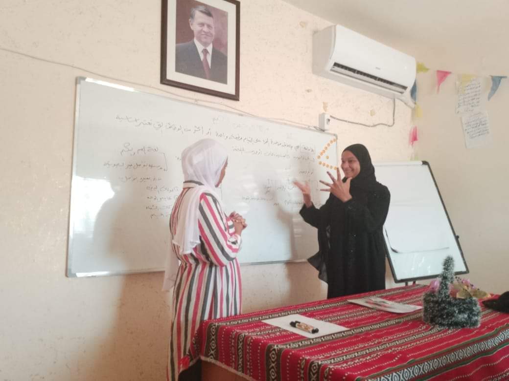 أشارت خلالها مادلين الجعارات إلى أساسيات لغة الاشارة لمجموعة من الشباب وذلك ضمن تمكين الشباب في مجال التعامل مع ذوي الإعاقة.