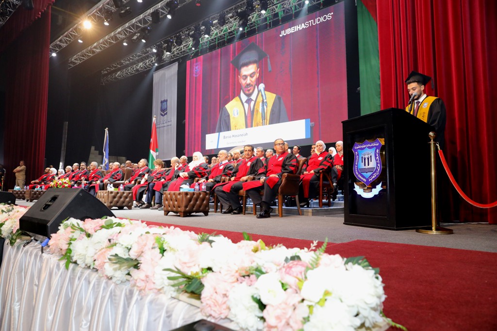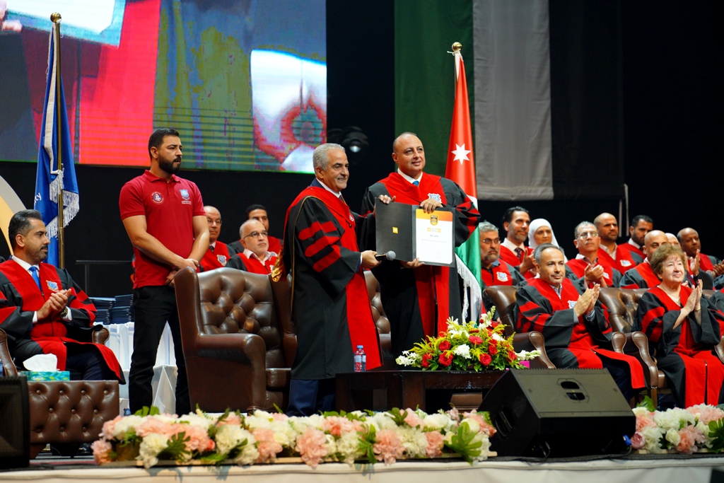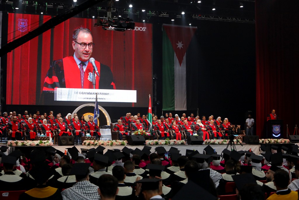 وأضاف : إنه لمِن دواعي الفخرِ والاعتزاز أن نكون هنا اليوم في جامعةٍ أضاءت سماءَ التعليم العالي في الأردن بنورِ السبقِ والريادةِ والابتكار، منذُ تأسيسها كأولِ جامعةٍ خاصةٍ في الأردن قبل أكثرَ من أربعة وثلاثين عاماً على يد المرحومٍ المؤسس الدكتور أحمد الحوراني، حتى أصبحت منارةً للعلمِ ومركزاً للإشعاعِ الحضاري.