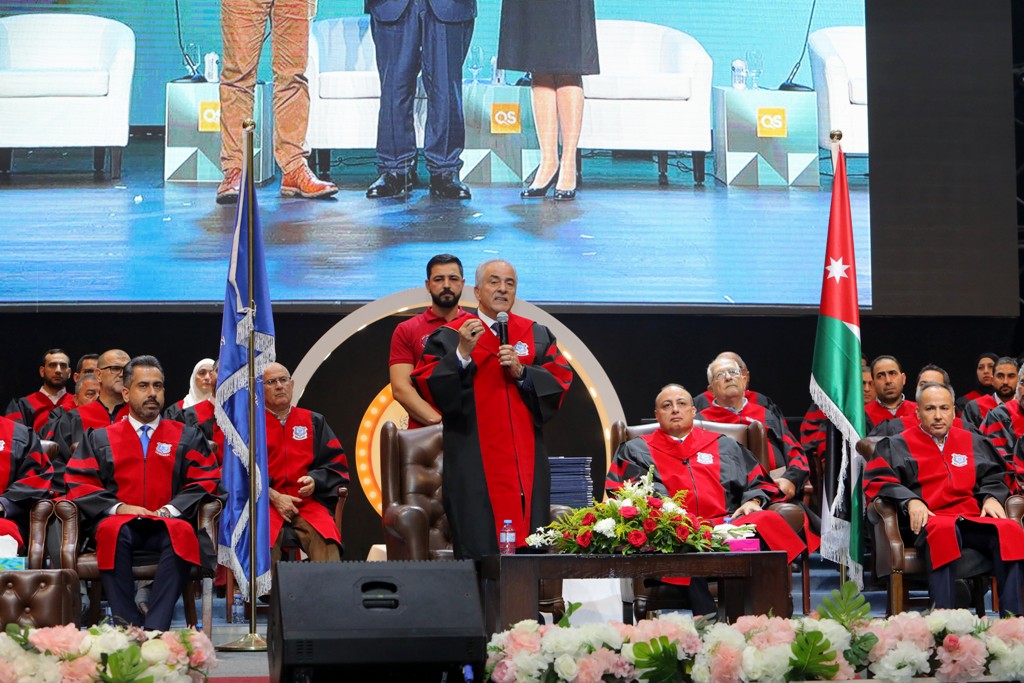 ** وقد تحدث رئيس الجامعة الاستاذ الدكتور ساري حمدان بكلمة مختصرة عن احتفاظ الجامعة بصدارتها على الجامعات الأردنية الخاصة، وحلولها في المرتبة الثالثة بين الجامعات الأردنية الرسمية والخاصة، متقدمة 40 مرتبة ضمن الفئة 801-850 عالمياً في تصنيف كيو إس العالمي لعام 2025.