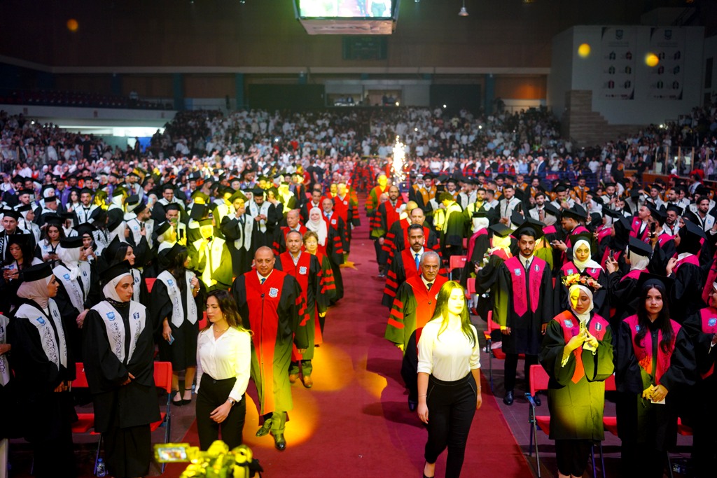 وهنأ الخريجين بالقول : أهنئكم بالأصالة عن نفسي ونيابة عن زملائي أعضاء الهيئتين التدريسية والإدارية، ونعرب لكم عن فخرنا بتخرجكم والذي يأتي ثمرةً للجهودِ المُضنِيَةِ التي بذلتموها على مدارِ سنواتٍ من الدراسةِ والمثابرة. فقد قمتم ببناءِ أساسٍ لمستقبلٍ واعدٍ ومشرق. واثقينَ بأنكم ستكونونَ رواداً ومبتكرينَ في مجالاتِكم المختلفة.