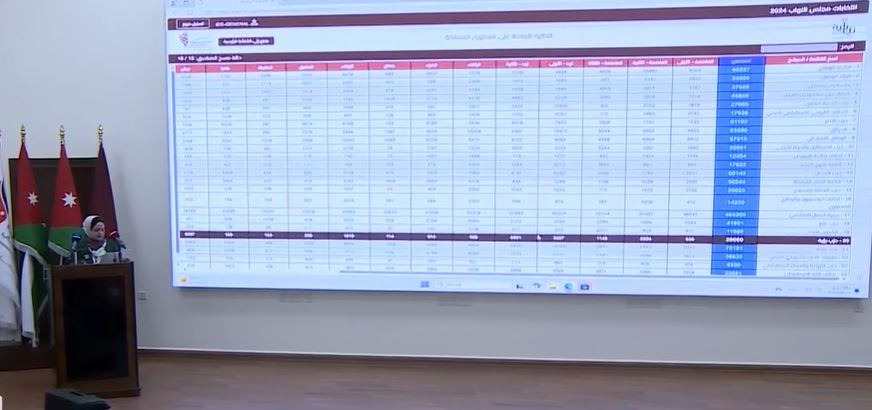 وقالت رئيس مركز استخراج النتائج في الدائرة العامة، إن القوائم الحزبية التي تخطت العتبة وحصلت مقاعد فيها عددها 10 أحزاب، هي: جبهة العمل الإسلامي 17 مقعدا، الميثاق 3، الوطني الاسلامي 3، إرادة 3، الاتحاد الوطني 2، تقدم 2، العمال 2، الارض المباركة 2، نماء والعمل 2، عزم 2.