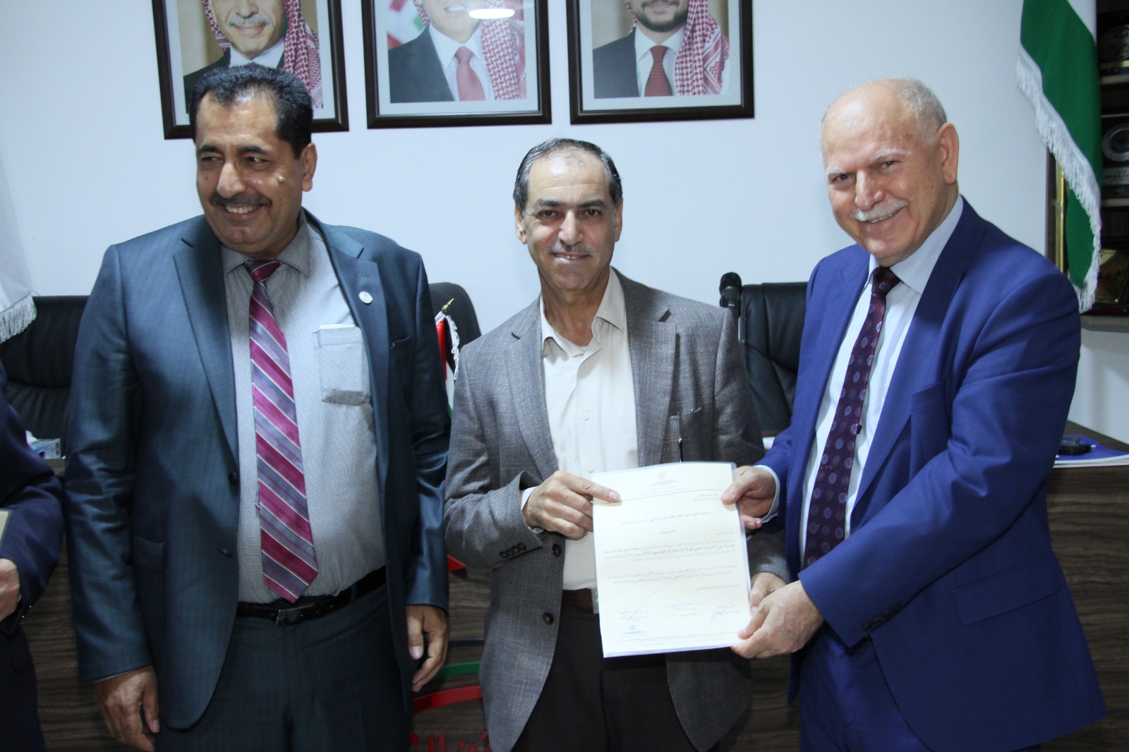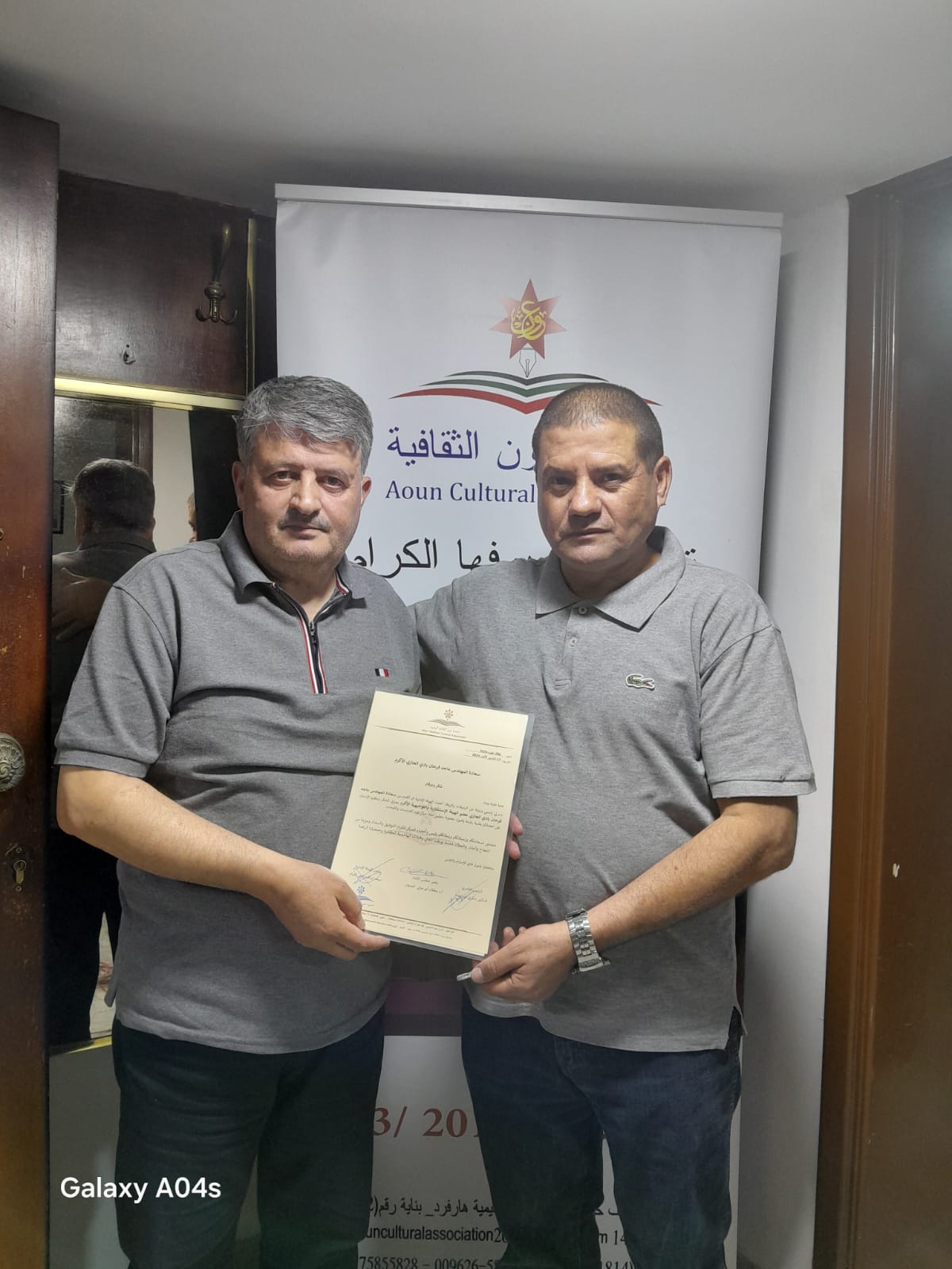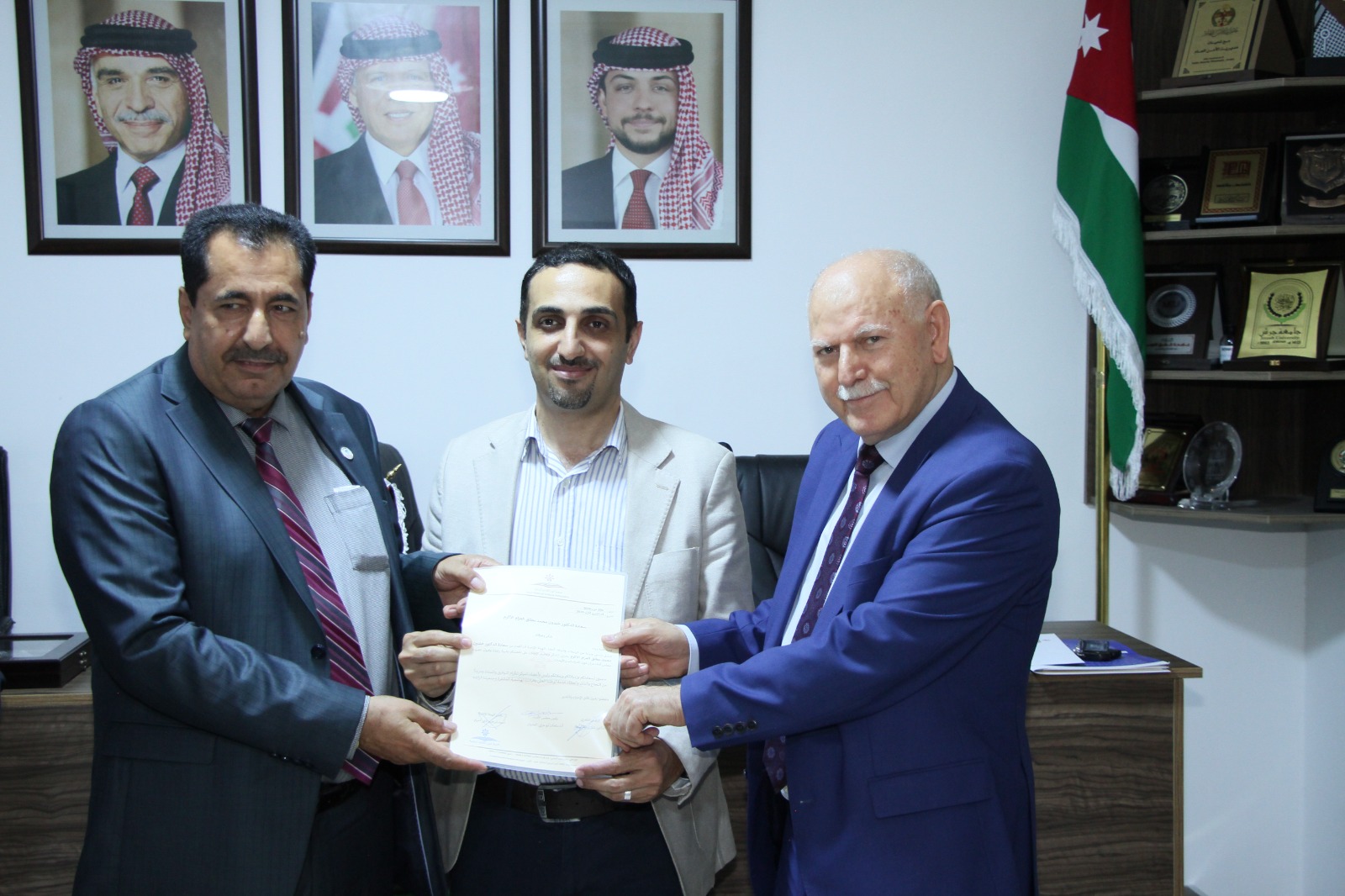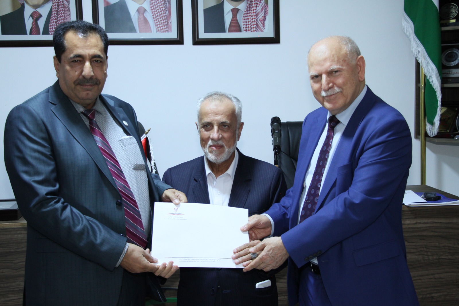 وبعد ذلك تفضل الدكتور المراشدة بتقديم شهادات عضوية مجلس أمناء مركز عَون للدراسات والأبحاث على رئيس وأعضاء المركز.