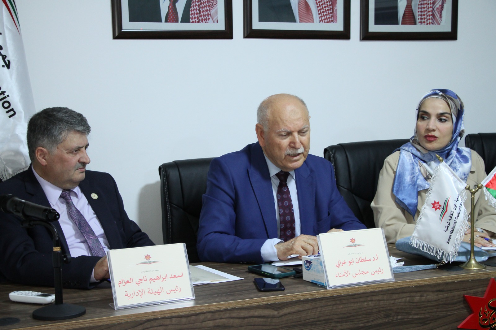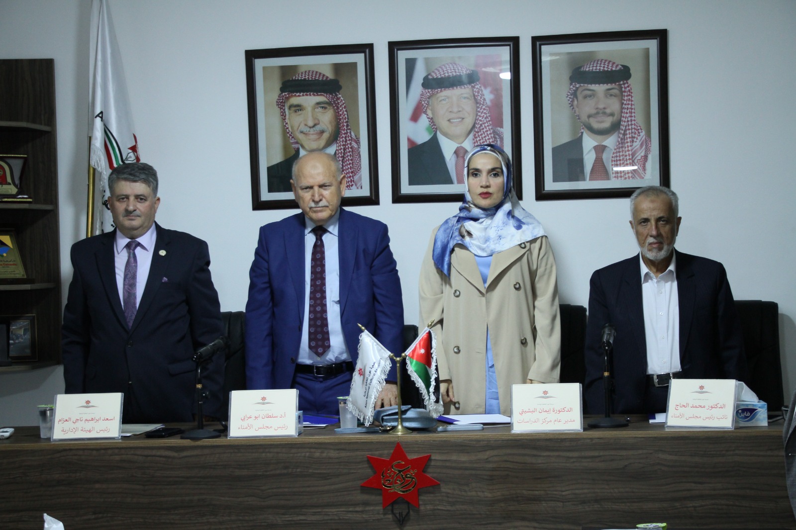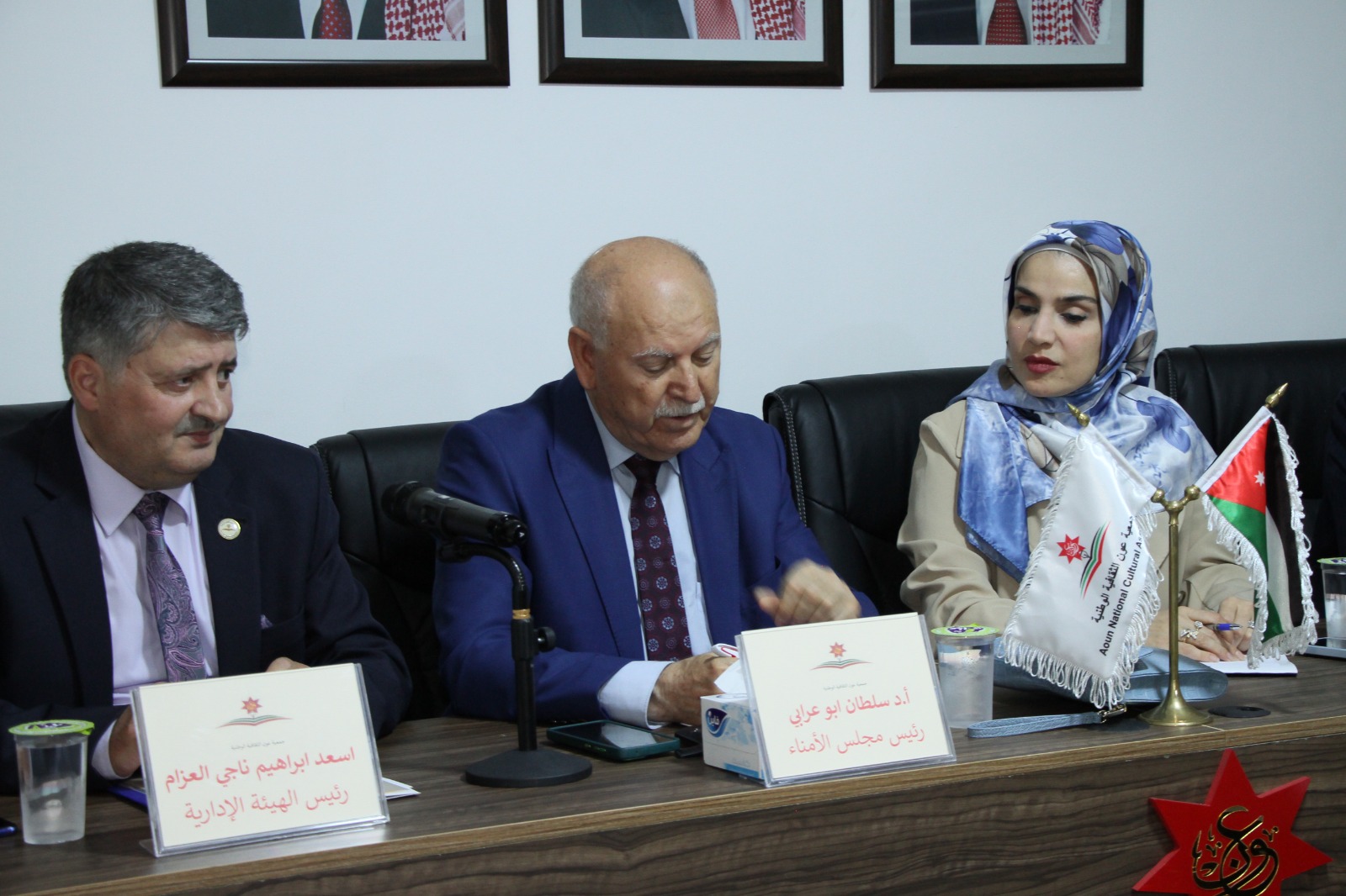في بداية الإجتماع الذي أفتتح بالسلام الملكي رحب اسعد ابراهيم ناجي العزام رئيس الهيئة الإدارية بالدكتور سلطان ابو عرابي رئيس مجلس أمناء المركز الذي يزرو الأردن حالياً لكونه يُشغل الآن منصب رئيس جامعة تشيك الخاصة في أربيل العراق وبجميع أعضاء المركز الكرام.
