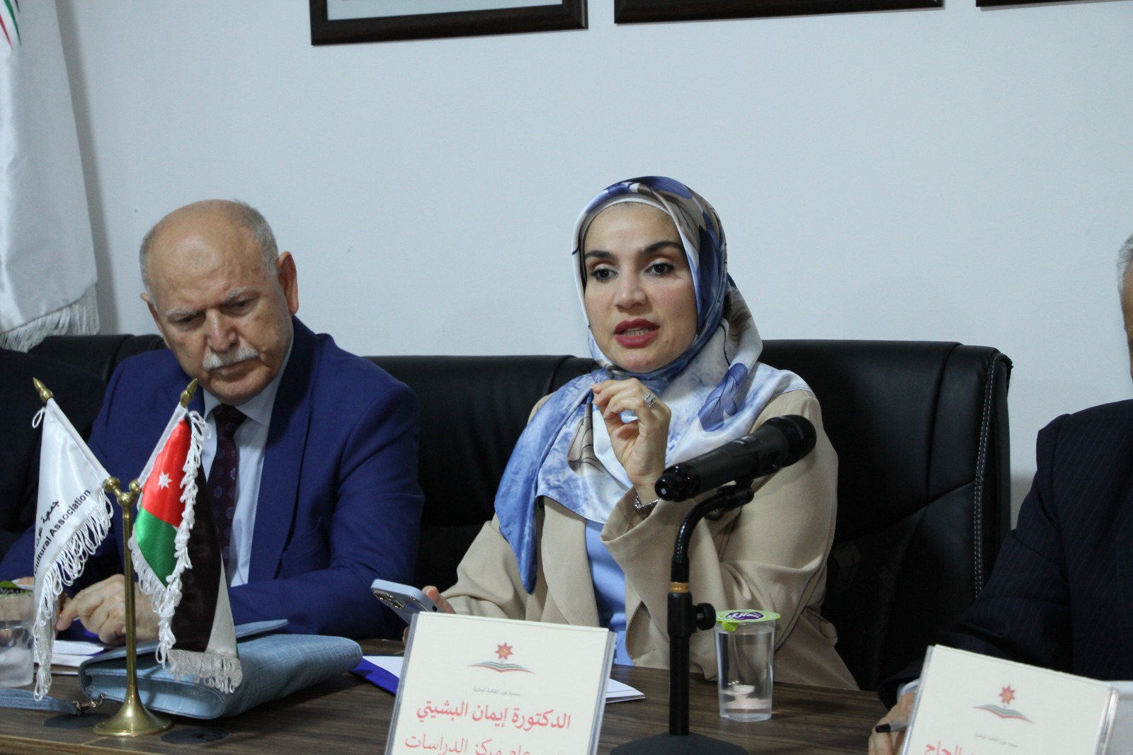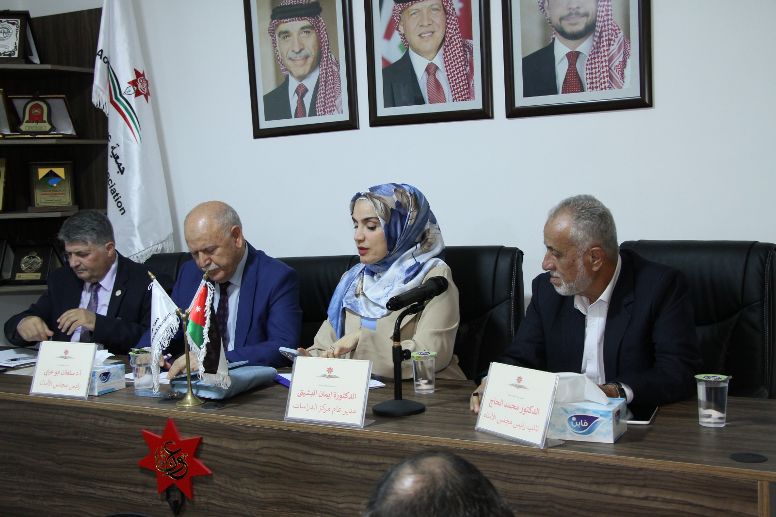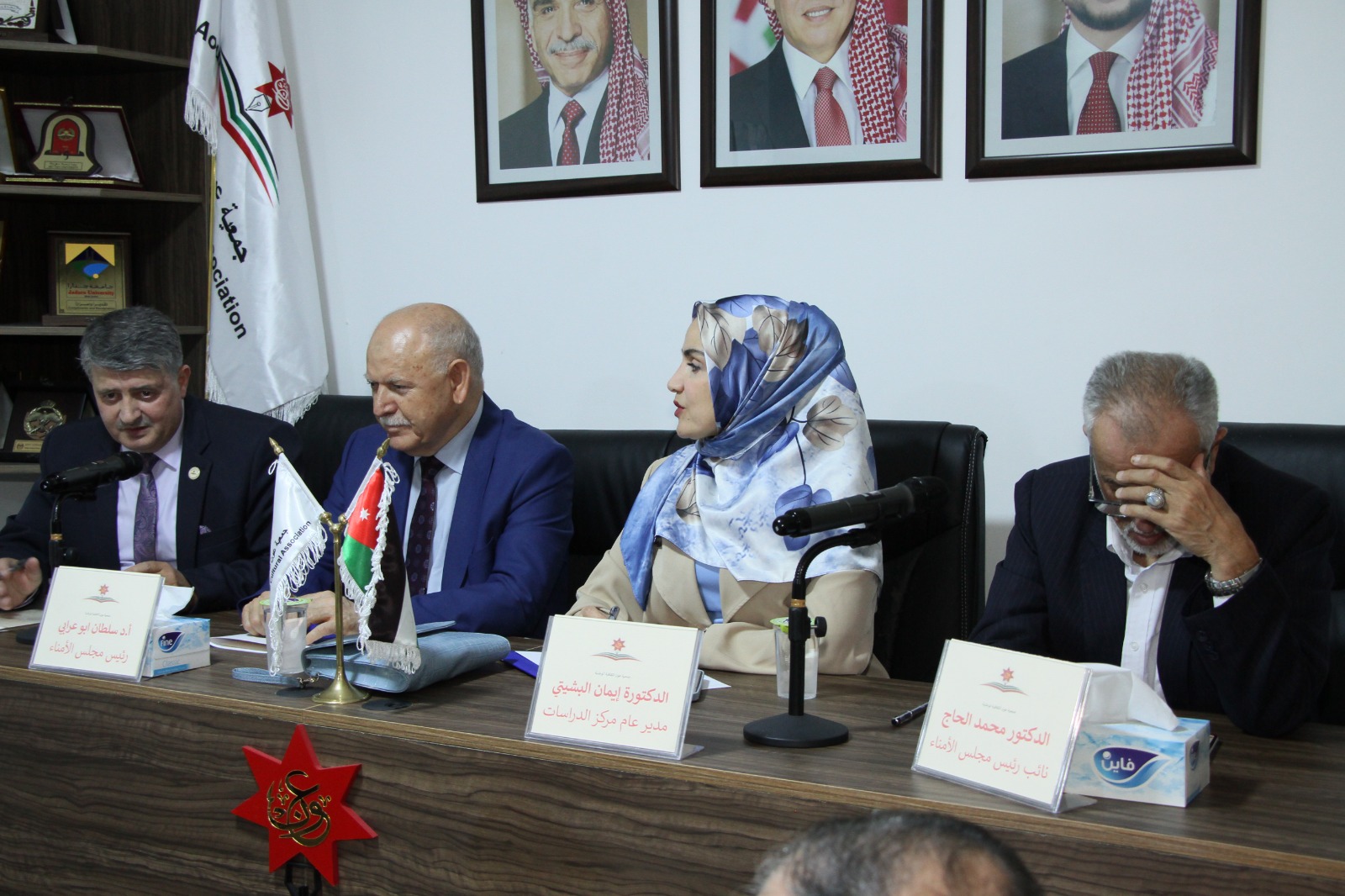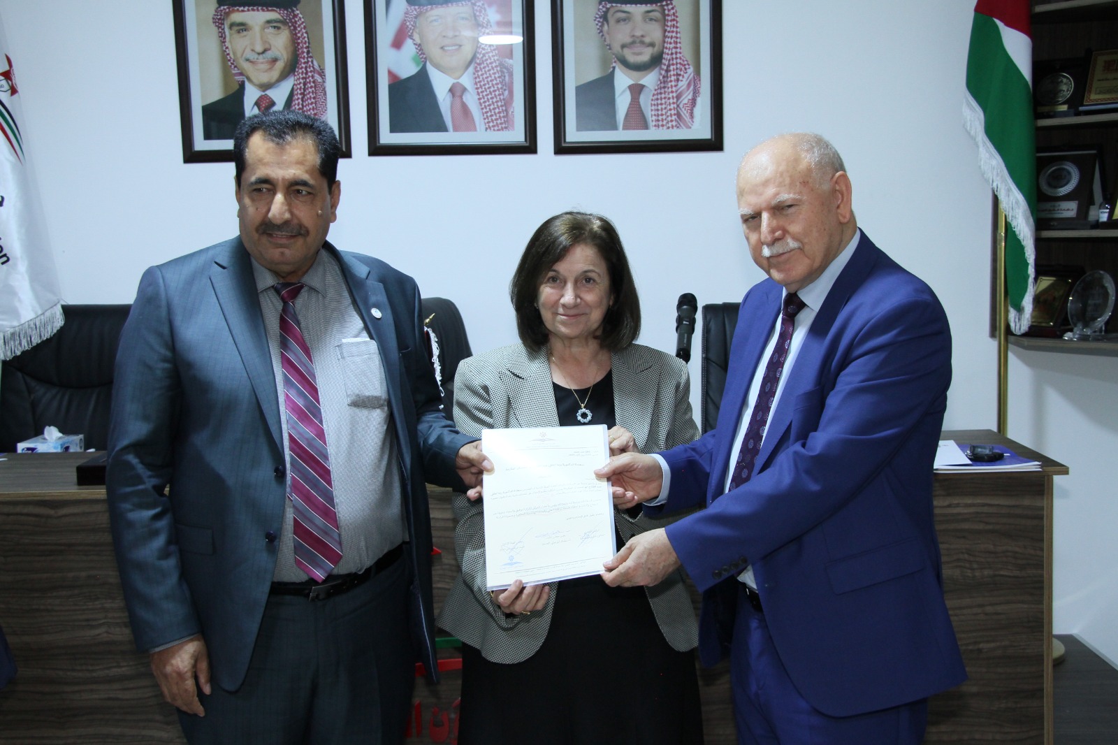 وبعد ذلك قدم ابو عرابي التهنة للدكتورة إيمان البشيتي بعتيينها مديراً عاماً للمركز.مؤكداً على اهمية هذا المركز وما يترتب علينا كأعضاء من مسؤولية كبيرة لتفعيل دوره بما يعود بالفائدة على الجمعية والمركز ومؤسساتنا الوطنية.
