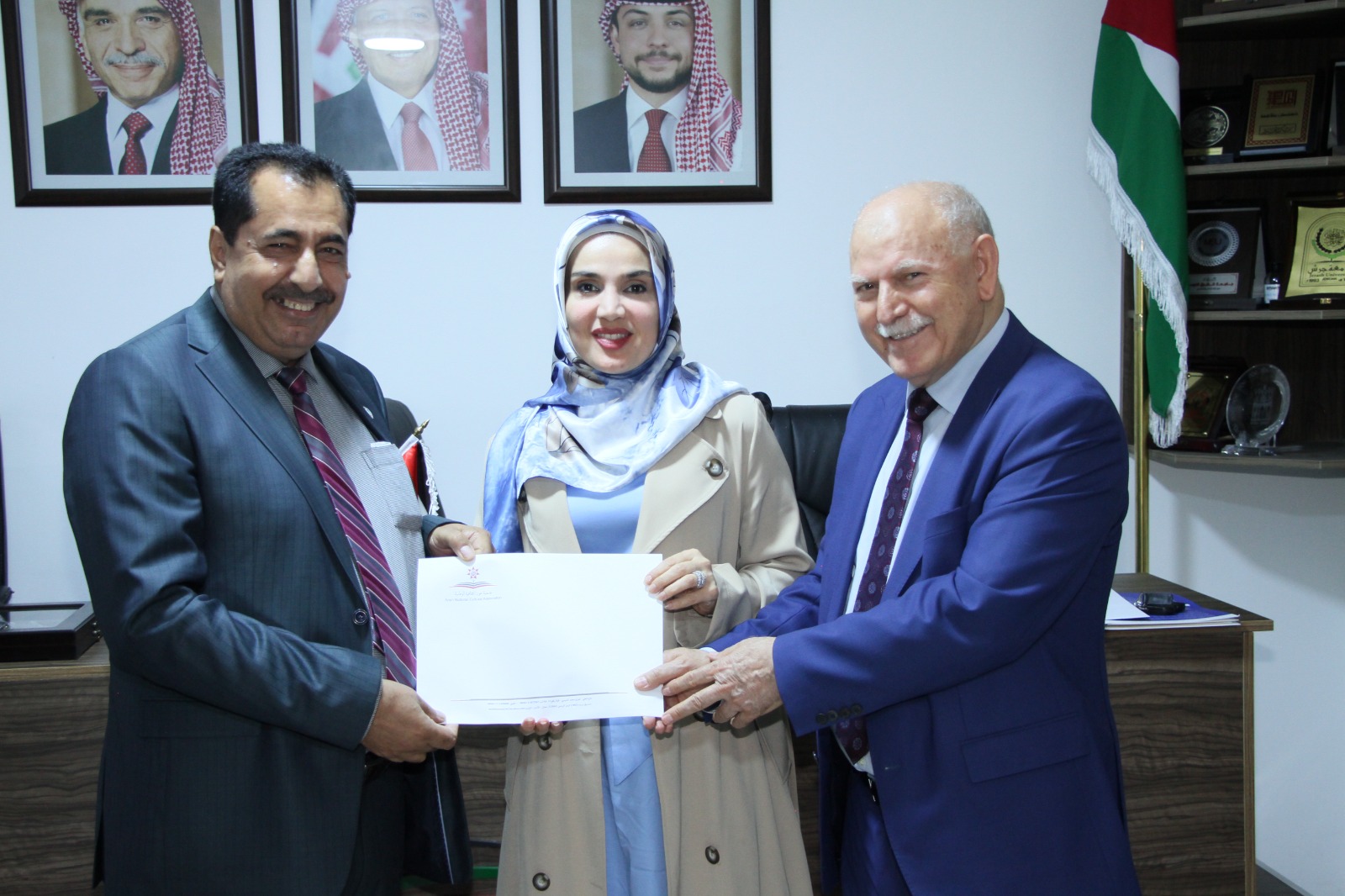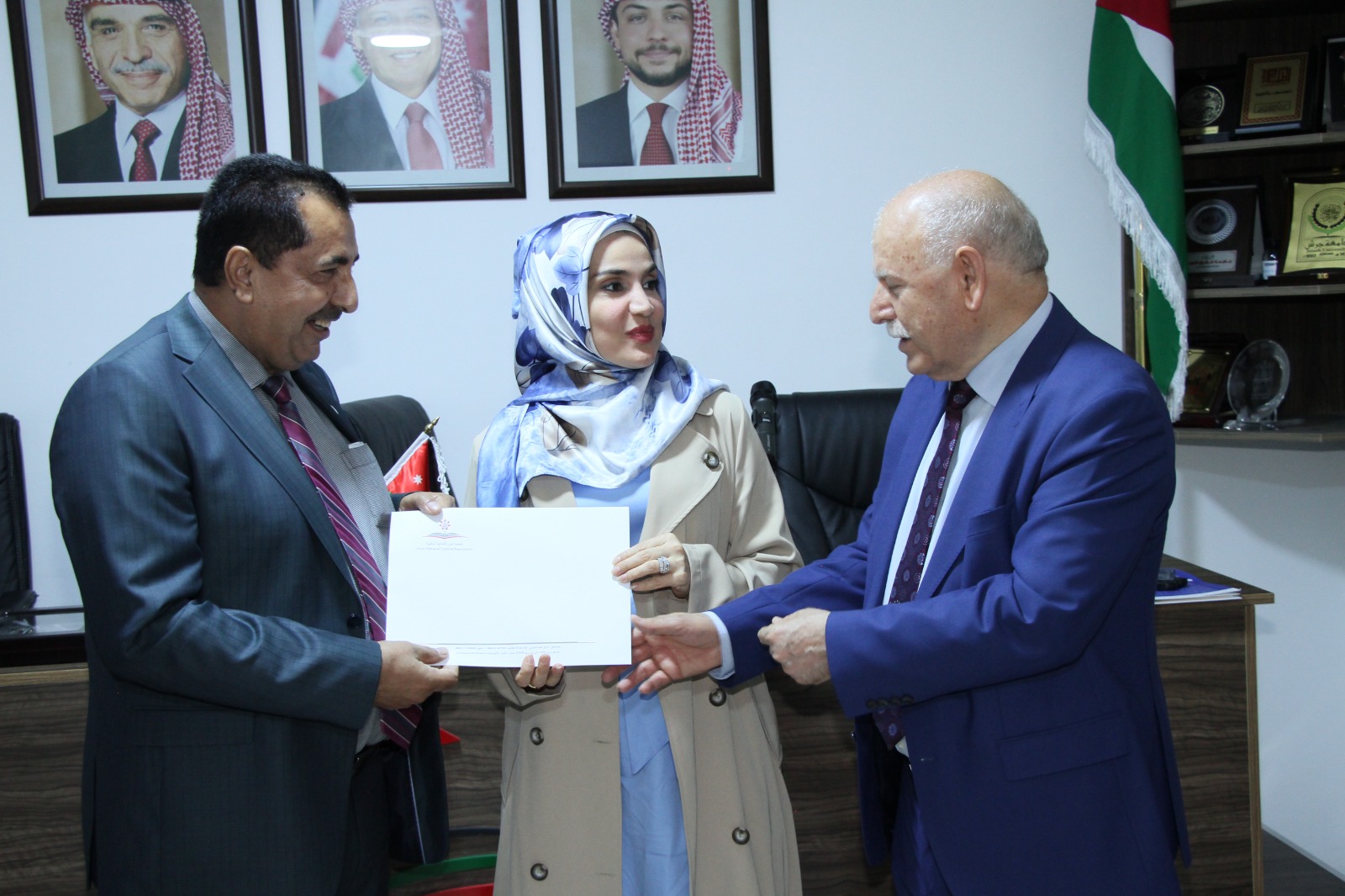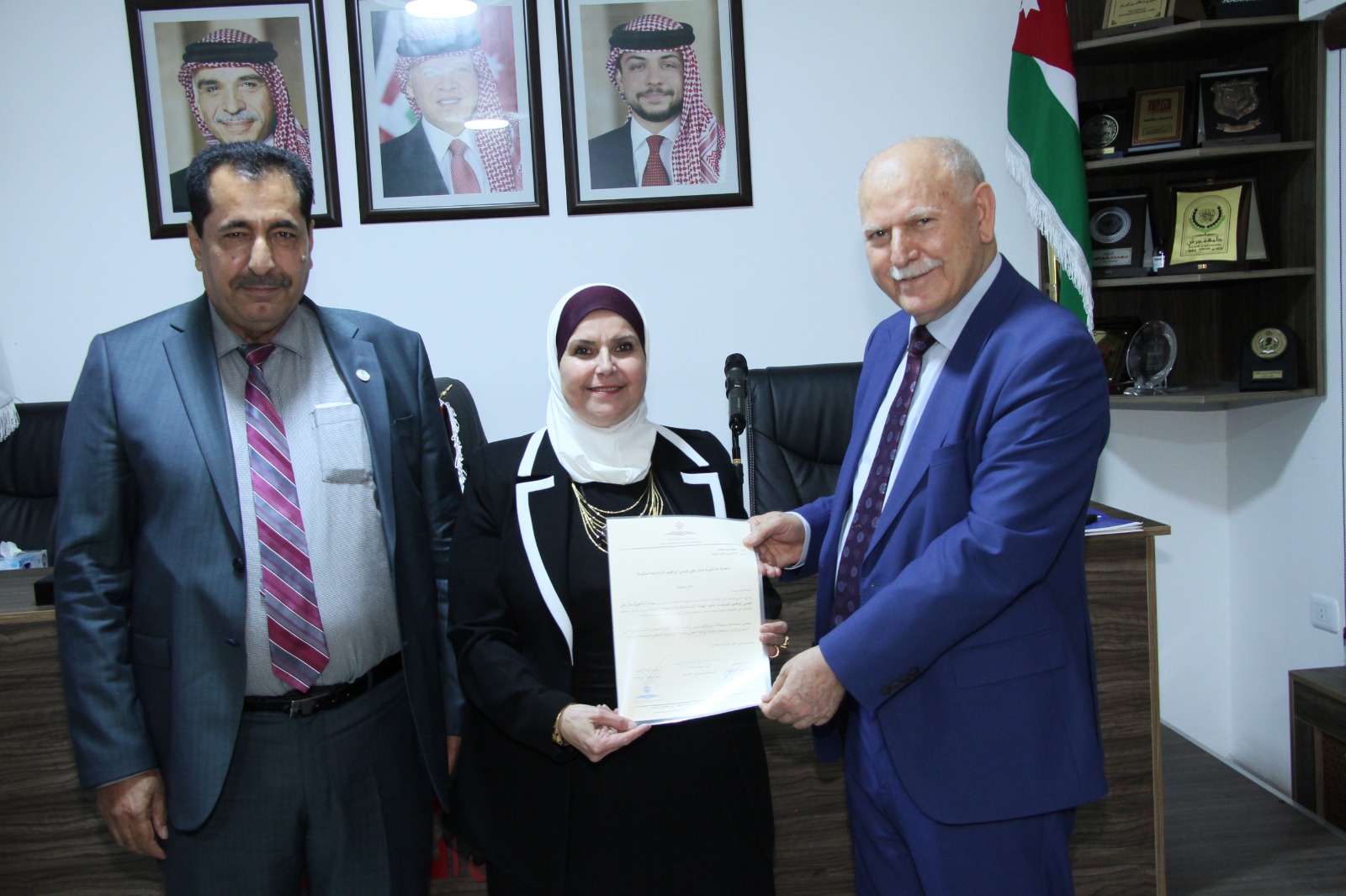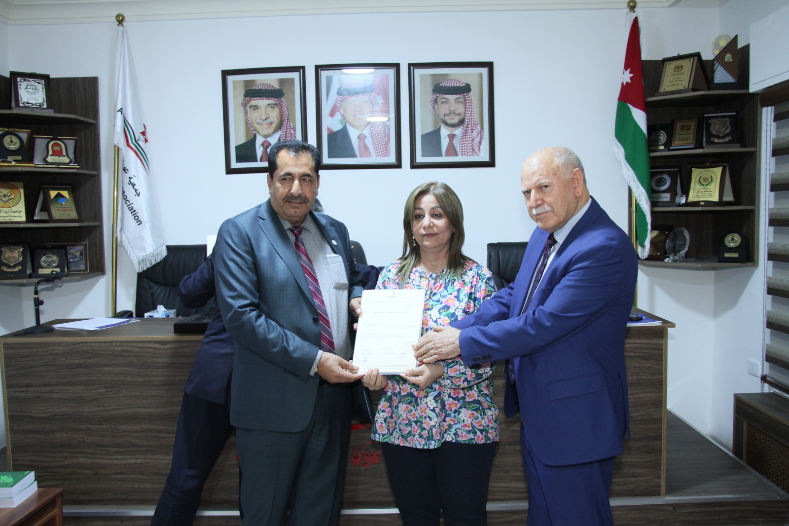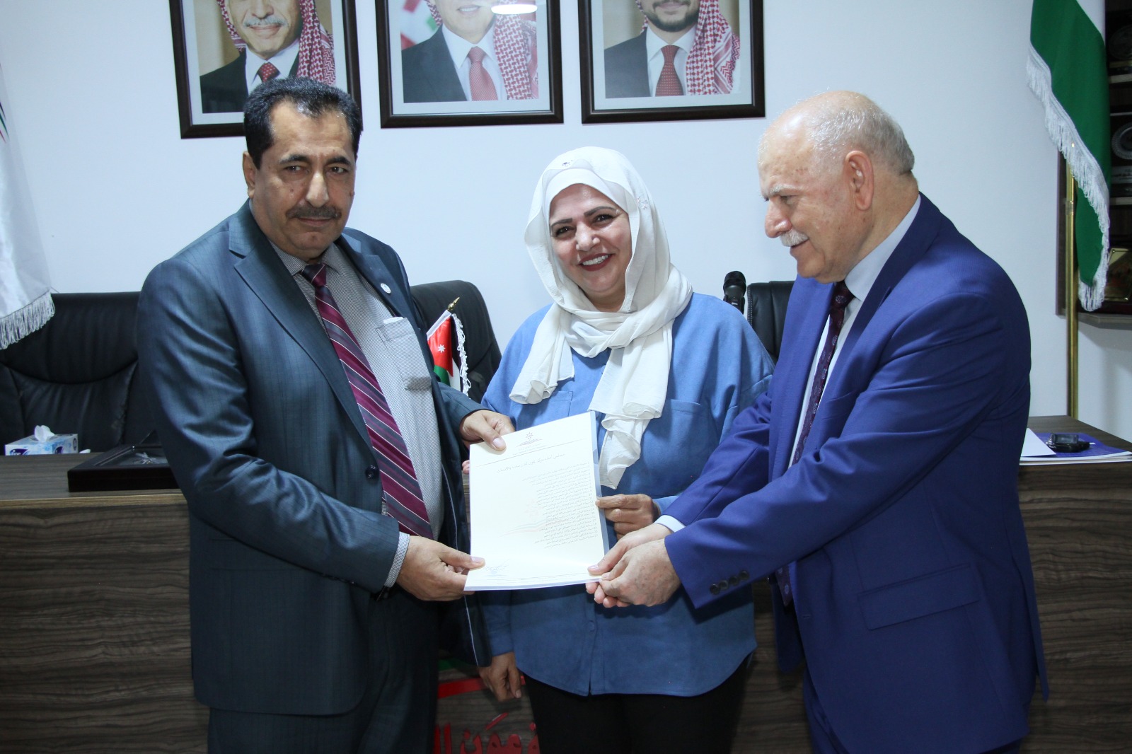 وبعد ذلك قدم ابو عرابي التهنة للدكتورة إيمان البشيتي بعتيينها مديراً عاماً للمركز.مؤكداً على اهمية هذا المركز وما يترتب علينا كأعضاء من مسؤولية كبيرة لتفعيل دوره بما يعود بالفائدة على الجمعية والمركز ومؤسساتنا الوطنية.