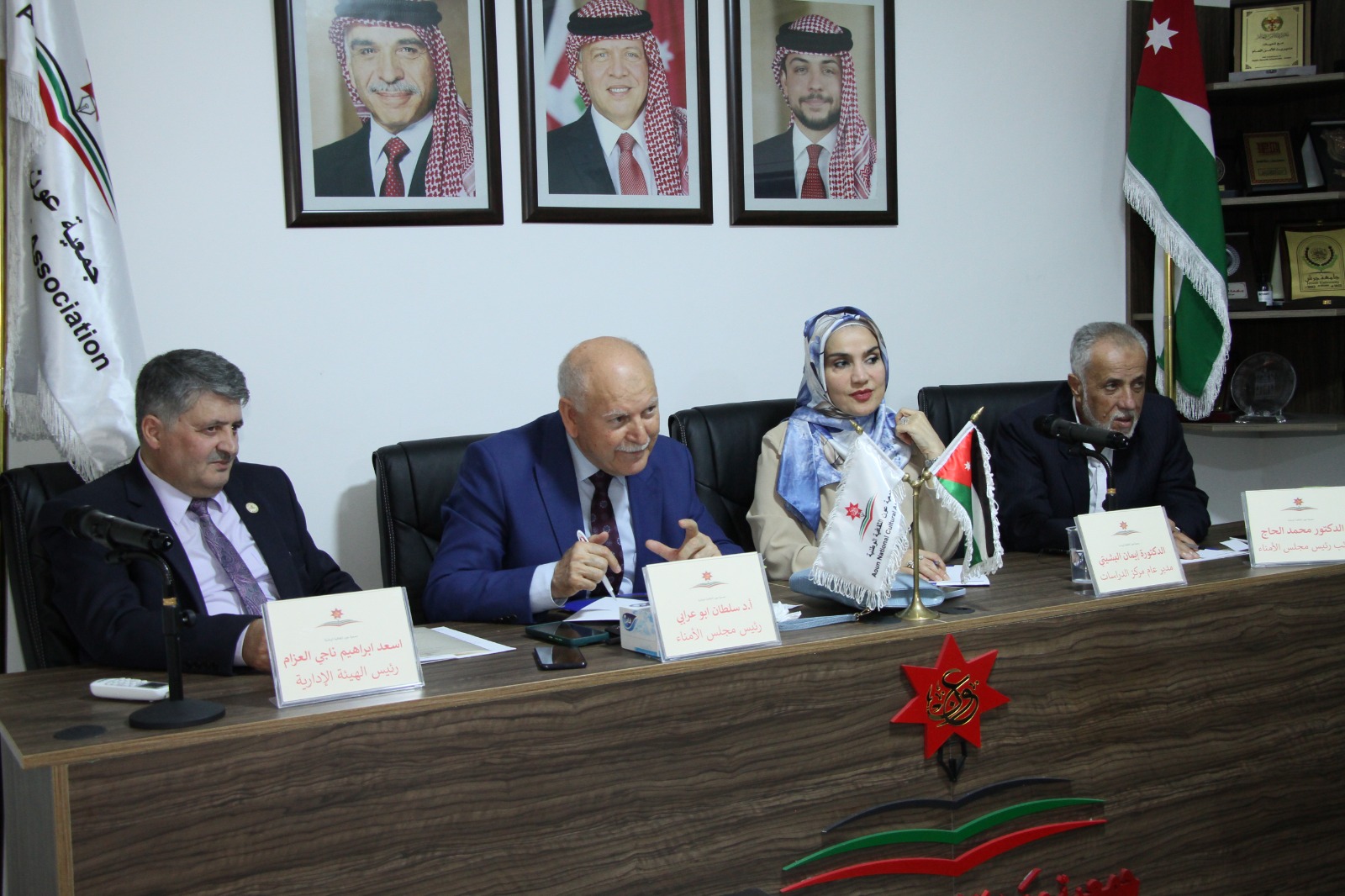 وكان اسعد ابراهيم ناجي العزام رئيس الهيئة الإدارية قد رحب بالدكتور شكري المراشدة مقدماً له الشكر والعرفان على تفضله برعاية هذا الحفل.. مشيراً إلى دور المراشدة الكبير كداعم رئيسي لأنشطة وفعاليات الجمعية منذ تأسيسها بالإضافة لتبرعه بمقر وتغطية كافة نفقات فرع إقليم الشمال الكائن في قصر جدارا مقابل البوابة الشمالية لجامعة اليرموك.