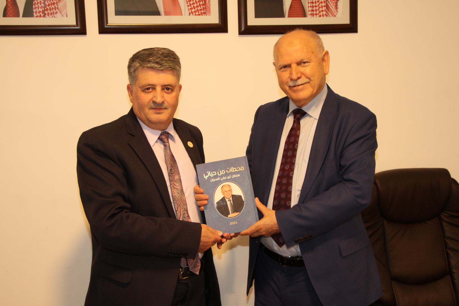 وبدوره أهدى الدكتور سلطان ابو عرابي نسخة عن كتابه "محطات من حياتي" لمكتبة جمعية عَون الثقافية تسلمها اسعد العزام رئيس الهيئة الإدارية