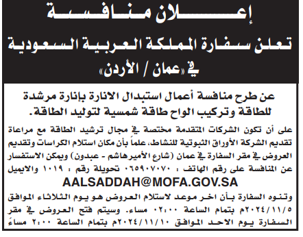 السفارة السعودية في عمان تطرح عطاء استبدال انارة