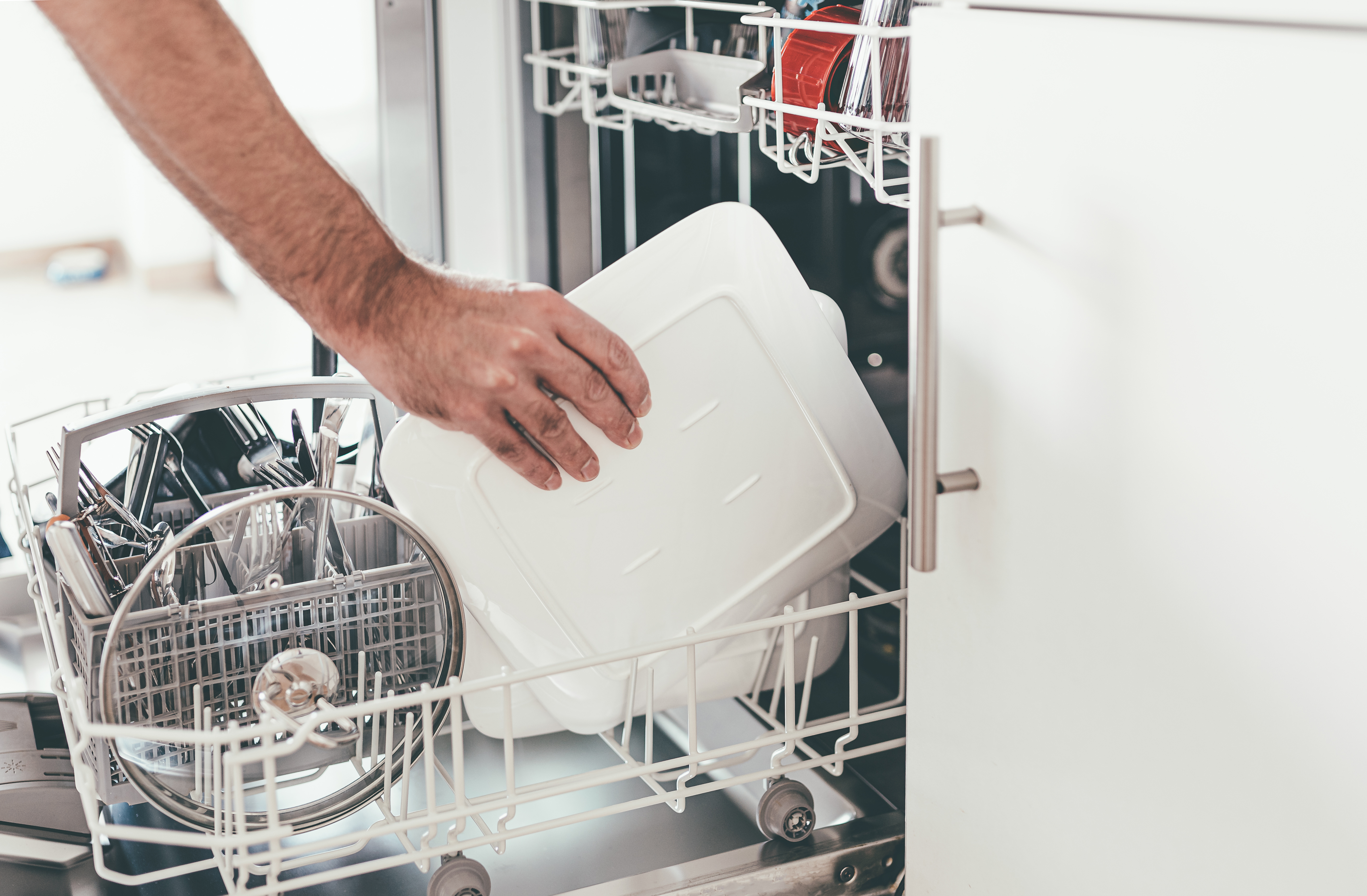 لا تنظف أوعية الزبدة وحاويات الأطعمة الجاهزة للاستخدام في التخزين، داخل غسالة الأطباق، إذ يمكن للحرارة العالية أن تتسبب بذوبانها، أو انحنائها.
