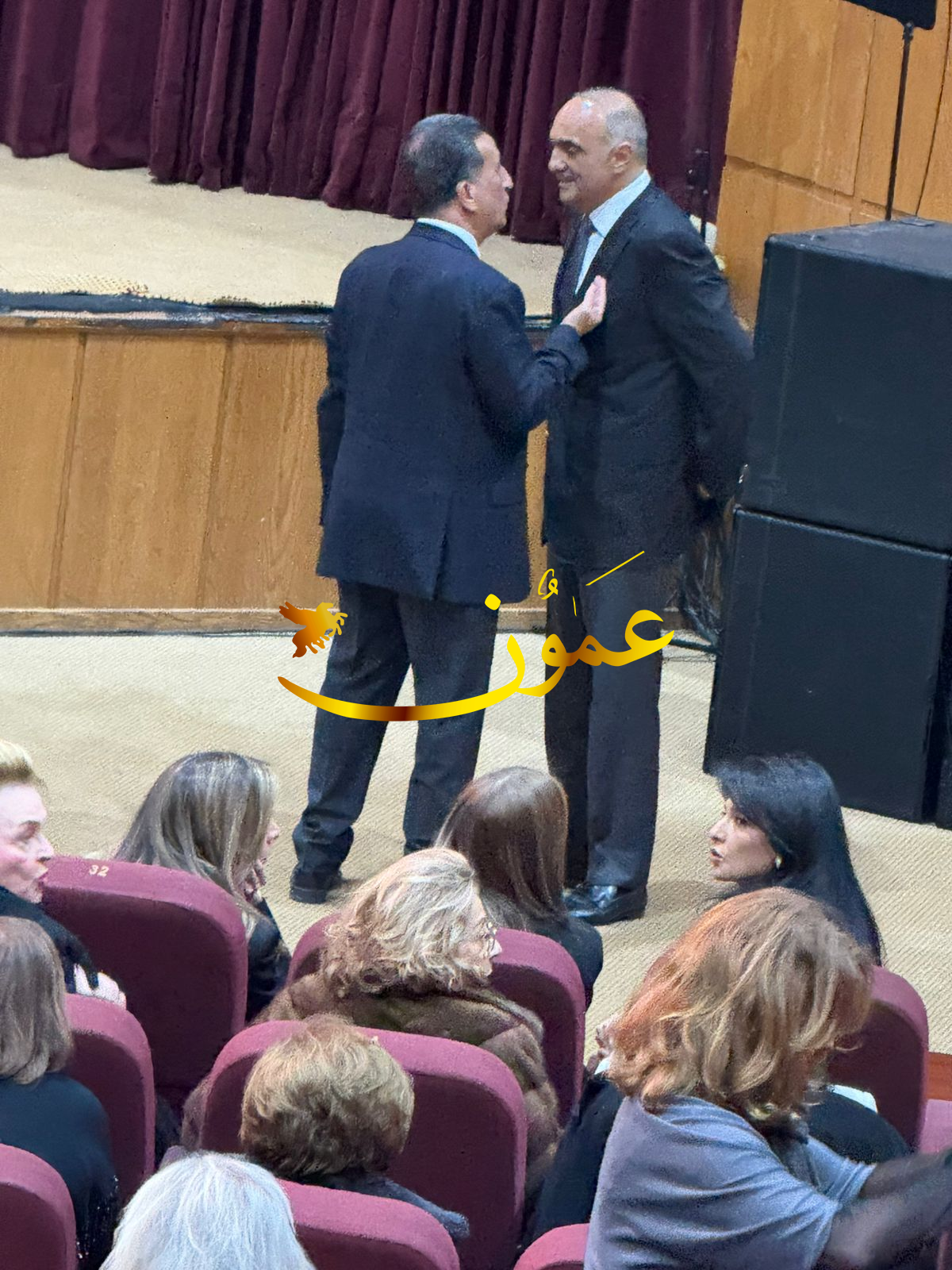عمون - انفرد رئيس الوزراء السابق الدكتور بشر الخصاونة برئيس الديوان الملكي الاسبق ناصر اللوزي جانبًا في حفل تأبين دولة زيد الرفاعي وسط تساؤلات الحضور عما جرى بينهما. |