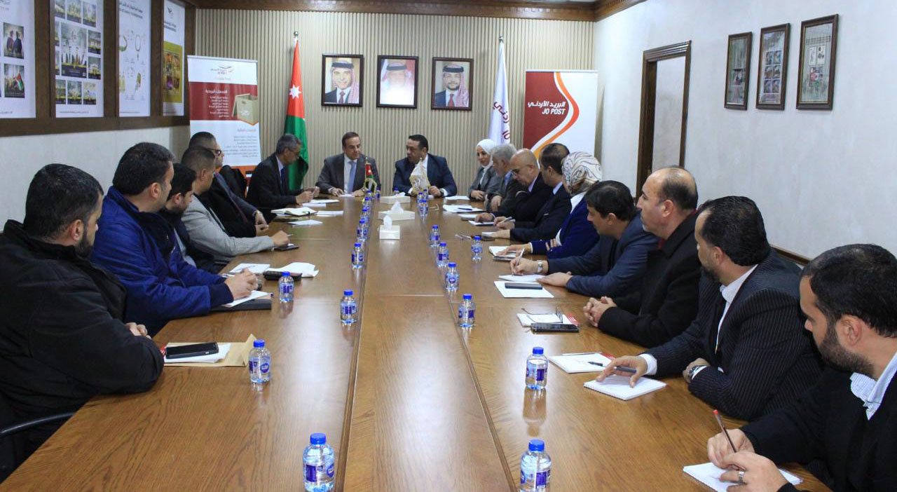 عمون - اطلع مدير عام الأحوال المدنية والجوازات، غيث الطيب، خلال زيارته لشركة البريد الأردني، ولقائه رئيس مجلس إدارة الشركة سامي الداوود، والمدير العام للبريد هنادي الطيب، على سبل تعزيز التعاون بين الأحوال المدنية والبريد الأردني. |