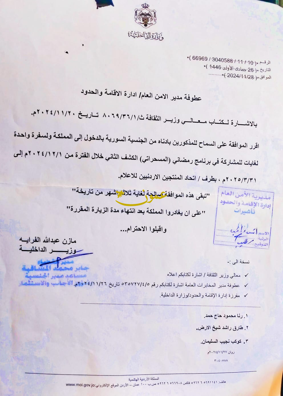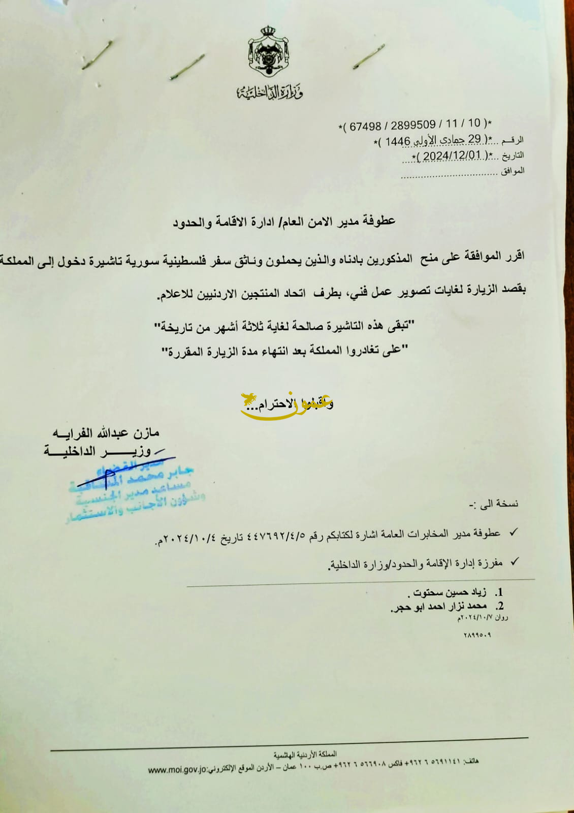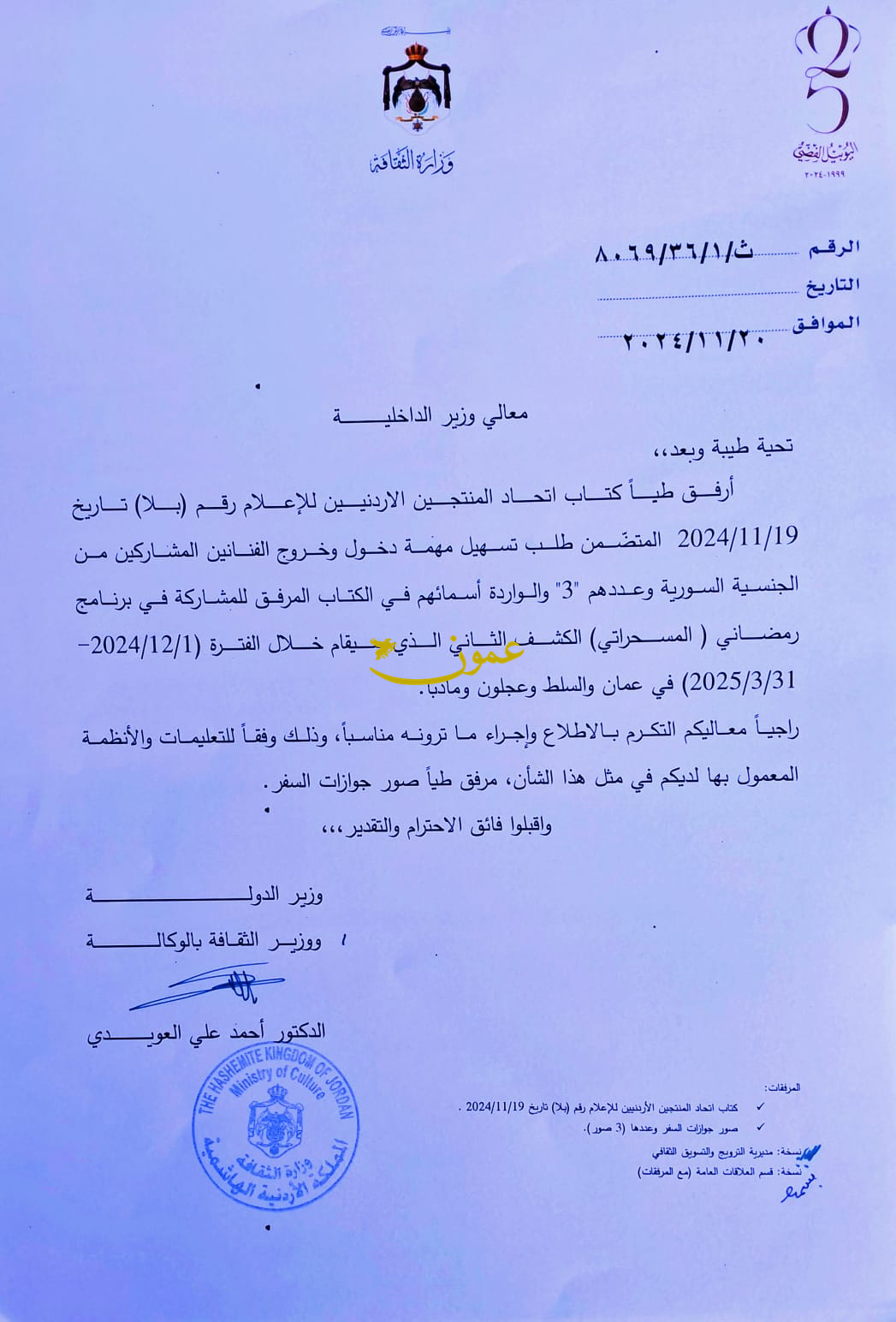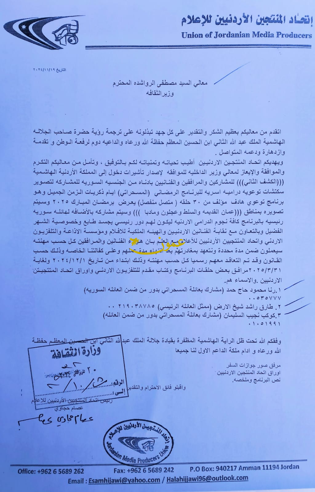 واستعرض منتج العمل العبداللات كتبا ووثائق تثبت حصول العمل على الاجازات والموافقات، وتقديم النصوص قبل البدء بالتصوير، والمتابعة حتى الانتهاء منه.