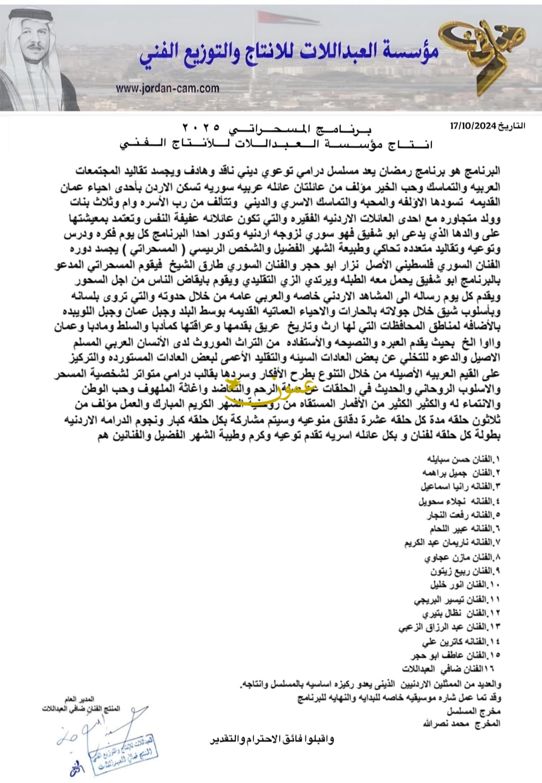 العبداللات: المسحراتي لم يهمش الفنان الأردني .. ولكل حلقة بطولة