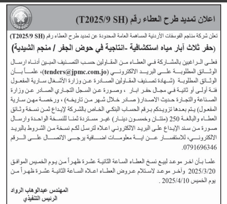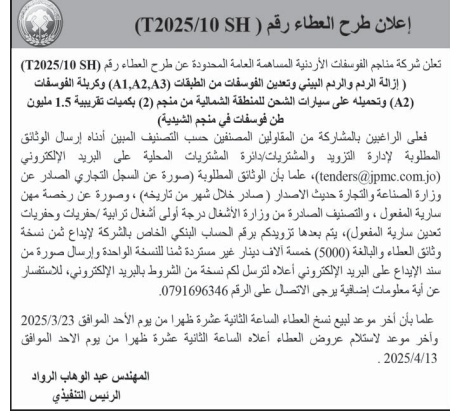 عطاءات صادرة عن شركة مناجم الفوسفات