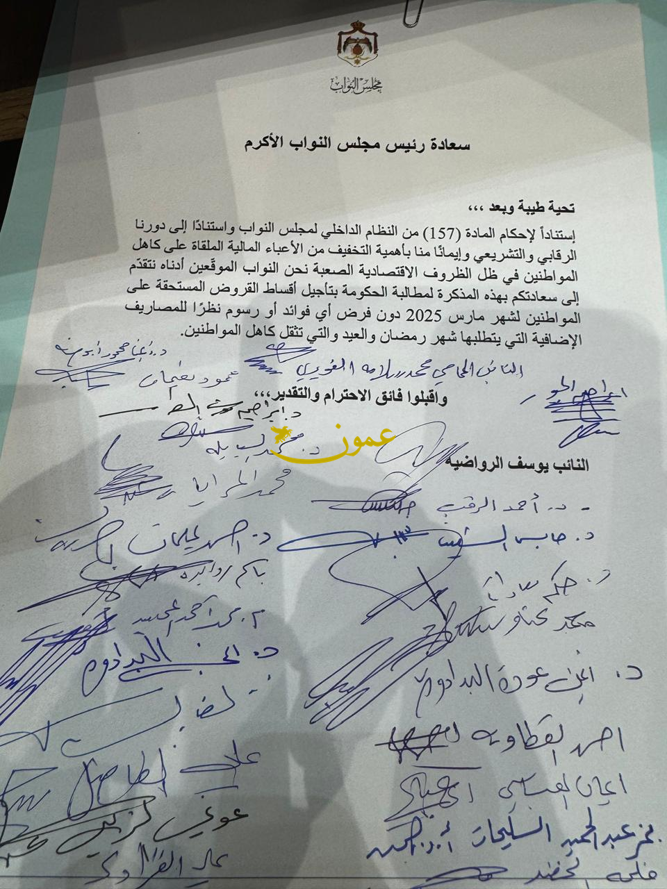 عمون - تبنى النائب يوسف الرواضية، مذكرة نيابية، قدمها إلى رئيس المجلس لمطالبة الحكومة بتأجيل اقساط القروض عن شهر آذار الحالي. |