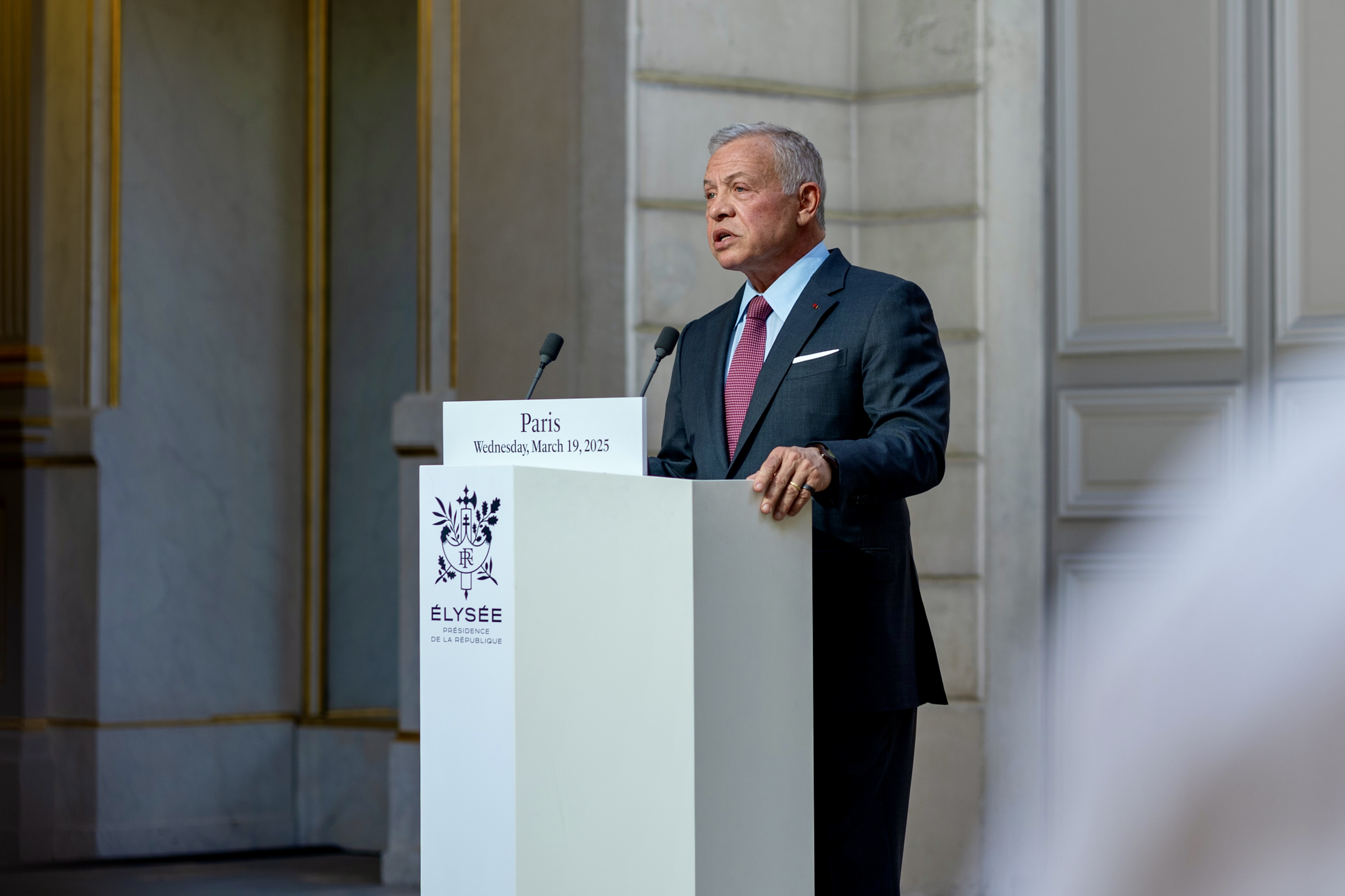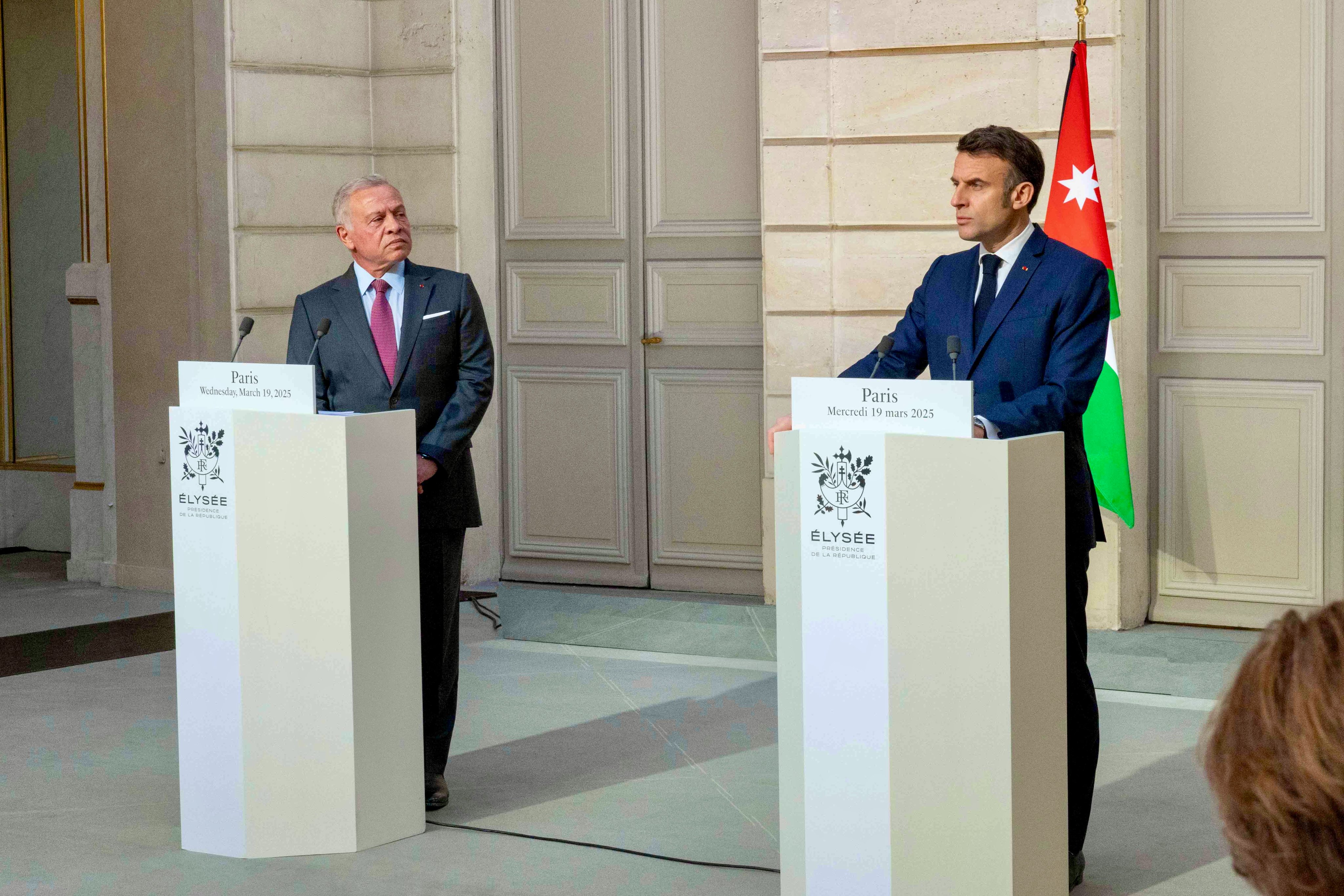 ودعا جلالته، في تصريحات صحفية مشتركة مع الرئيس الفرنسي إيمانويل ماكرون بقصر الإليزيه في باريس، المجتمع الدولي للتحرك الفوري من أجل استعادة وقف إطلاق النار في غزة وتنفيذ جميع مراحله.
