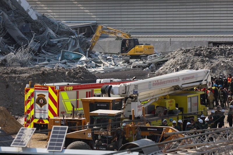 وتحوّل المبنى الواقع في شمال العاصمة التايلاندية إلى كومة من الركام في غضون ثوان بعد الزلزال، وتم تعليق بعض خدمات المترو والقطارات الخفيفة في بانكوك.