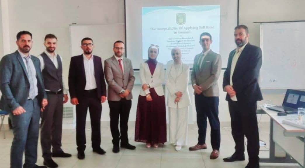 "نمذجة تطبيق التعرفة المرورية على طريق المطار في عمّان باستخدام برمجية المحاكاة VISSUM"، وهو مشروع مبتكر يعالج قضية مرورية حيوية باستخدام أدوات محاكاة متقدمة، ويجسّد قدرة الطلبة على توظيف المعرفة الهندسية لإيجاد حلول عملية ومستدامة لمشكلات البنية التحتية.