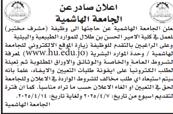 وظيفة شاغرة لدى الجامعة الهاشمية