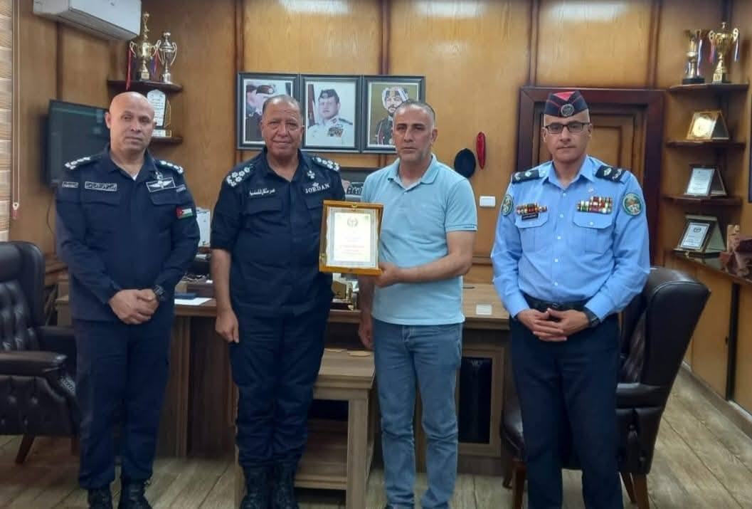 عمون - كرم قائد أمن إقليم الشمال العميد عمر الكساسبة، المواطن طارق المومني تقديراً لأمانته، وذلك لتسليمه مبلغ مالي بقيمة 4 الاف يورو و3 اجهزة خلوية وأوراق ثبتوية عَثر عليها داخل أحد وسائط النقل العمومية في محافظة إربد. |