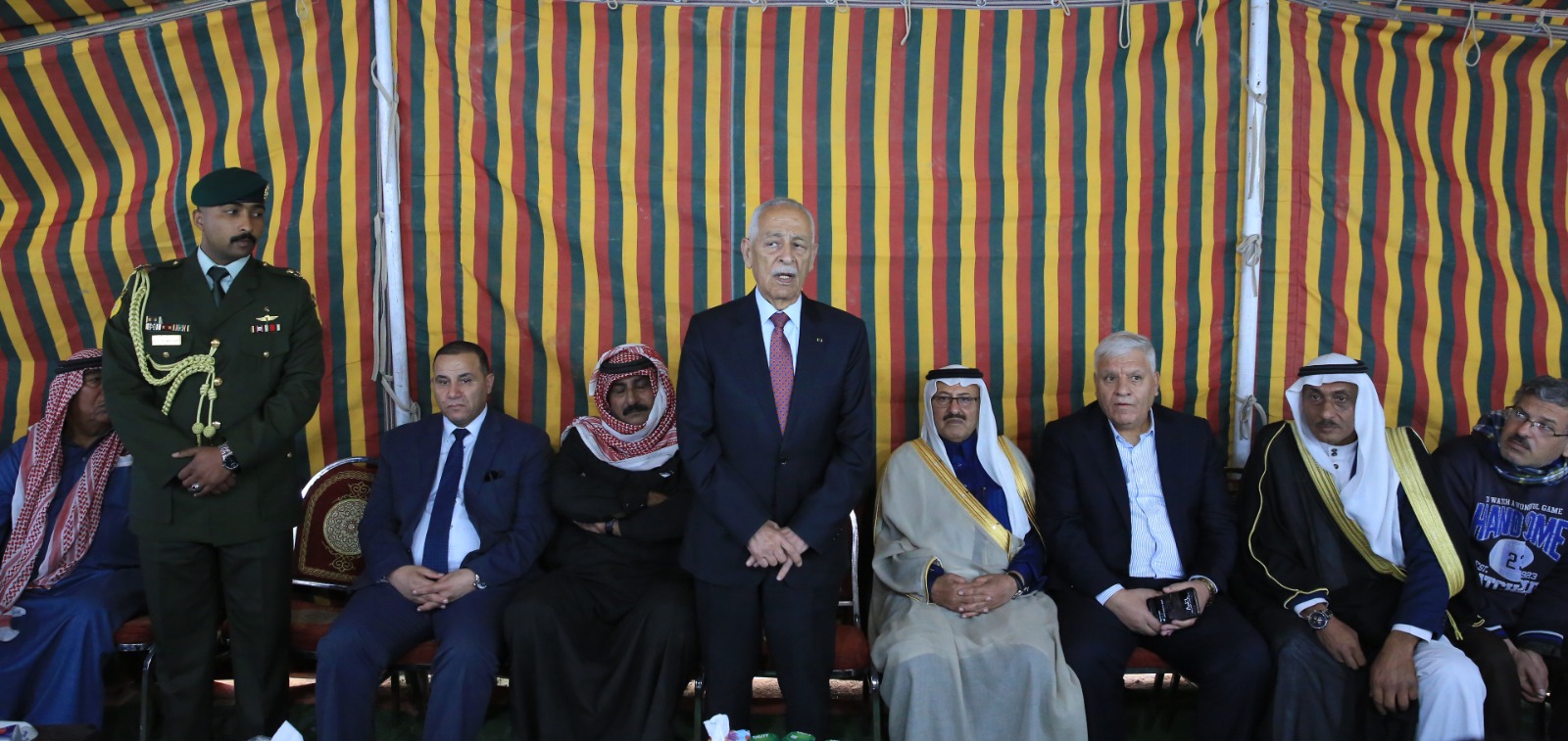 عمون - مندوبا عن جلالة الملك عبدالله الثاني، وسمو الأمير الحسين بن عبدالله الثاني، ولي العهد، قدم رئيس الديوان الملكي الهاشمي يوسف حسن العيسوي ،الأربعاء، واجب العزاء إلى عشائر الناصر والزعبي والغويري وداوود ومطير.