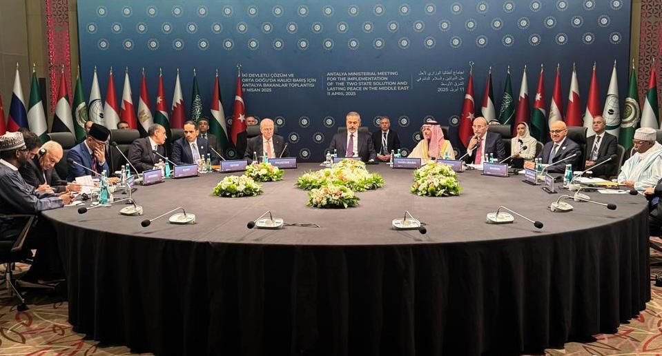 نحن وزراء الخارجية وممثّلو اللجنة الوزارية حول غزّة التابعة لجامعة الدول العربية ومنظمة التعاون الإسلامي، بالإضافة إلى ممثلين عن أيرلندا، ومملكة النرويج، وجمهورية سلوفينيا، ومملكة إسبانيا، وجمهورية الصين الشعبية، وروسيا الاتحادية، قد اجتمعنا اليوم في أنطاليا لمناقشة تطورات الأوضاع في الأراضي الفلسطينية المحتلة مع التركيز بشكل خاص على وقف الحرب على غزة، وإننا نسعى لاتخاذ إجراءات ملموسة لتطبيق حل الدولتين من أجل تحقيق السلام الدائم، بالإضافة للإجراءات العاجلة التي يتطلبها ذلك.
