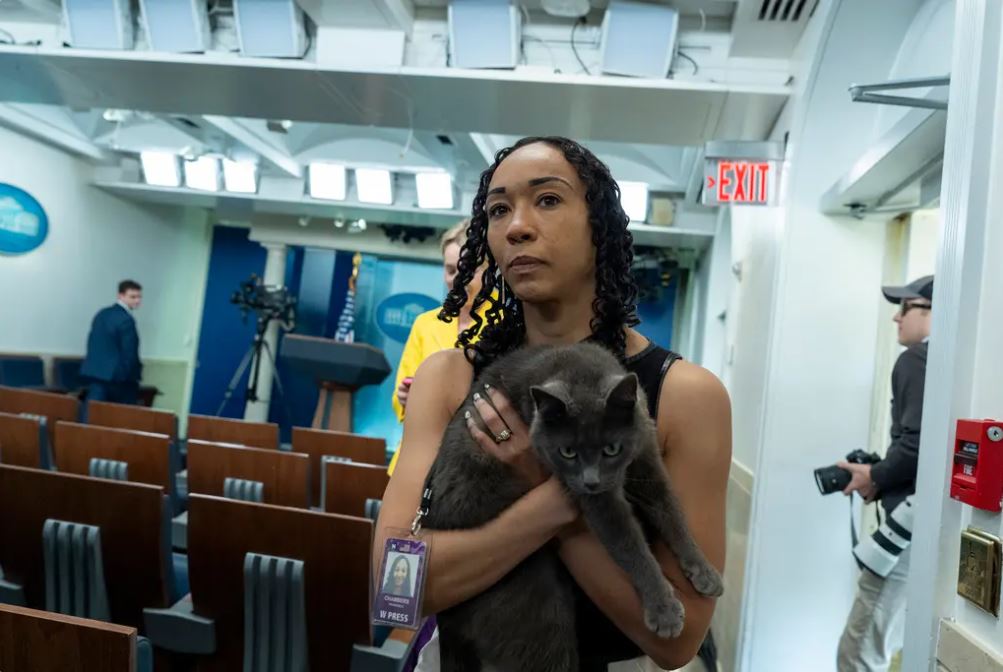 قطة "غريبة" تتسلل للبيت الأبيض وتدخل غرفة المؤتمرات الصحفية