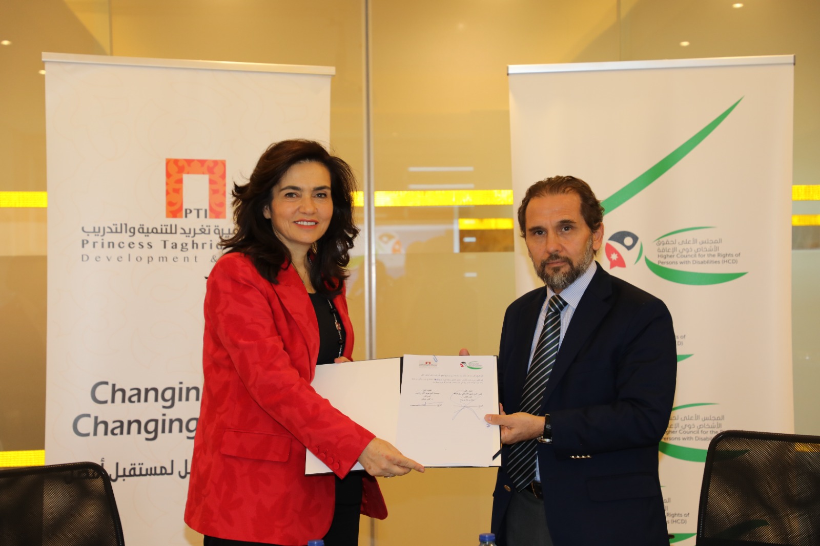 ووقع المذكرة عن المجلس سمو الأمير مرعد بن رعد، كبير الأمناء رئيس المجلس الأعلى لحقوق الأشخاص ذوي الإعاقة، وعن مؤسسة الأميرة تغريد للتنمية والتدريب الدكتورة أغادير جويحان مدير عام المؤسسة.