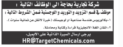 شركة تجارية بحاجة لتعيين مهندس صناعي
