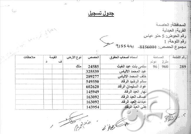 ... ان قطعة الأرض المذكورة والتي تردد ذكرها بأنها " ارض للدولة تم الاستيلاء عليها " هي في الواقع من نوع الملك يملكها الآن أكثر من ألف وريث من أهالي قرية المشيرفة التي تقطنها عدة عائلات من شتى الاصول والمنابت حيث ورثها هؤلاء عن 59 جدا .. كما هو واضح من المرفق رقم ( 1) .