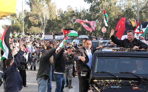 بسيارة مكشوفة يتجول جلالته مع نجله وولي عهده سمو الأمير حسين وسط المحبين من أبناء شعبه ، بلا حراسة وبلا حماية ، واثق الخطوة ، يمشي ملكا ، هذا هو عنوان المحبة والولاء الشعبي وروح التسامح والتعايش الاسلامي المسيحي في وطننا الأم ودمتم.